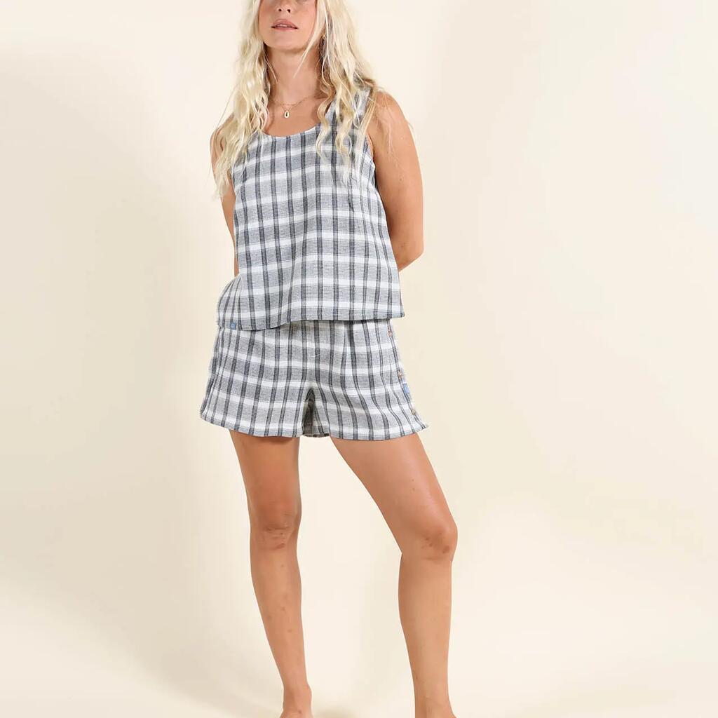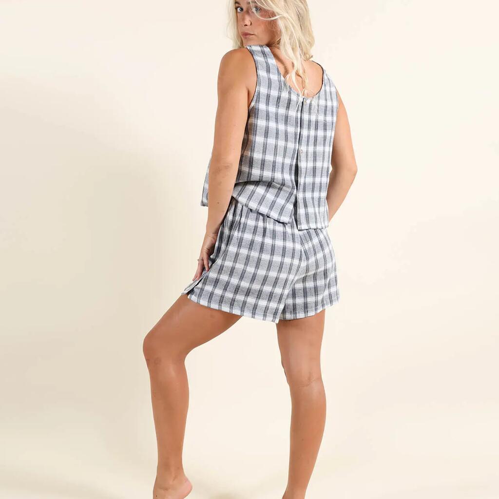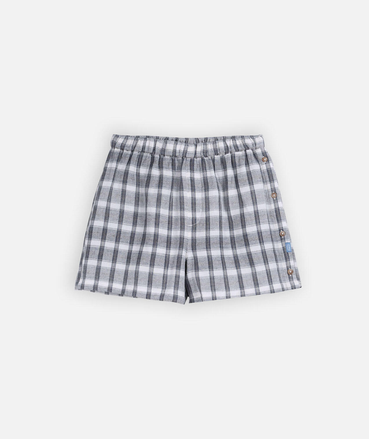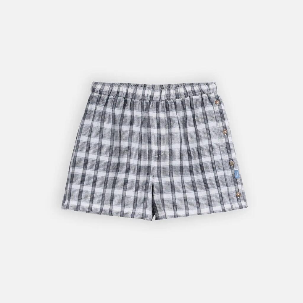 Elastic embossed cotton shorts, buttoned side opening, 115 gsm fabric.