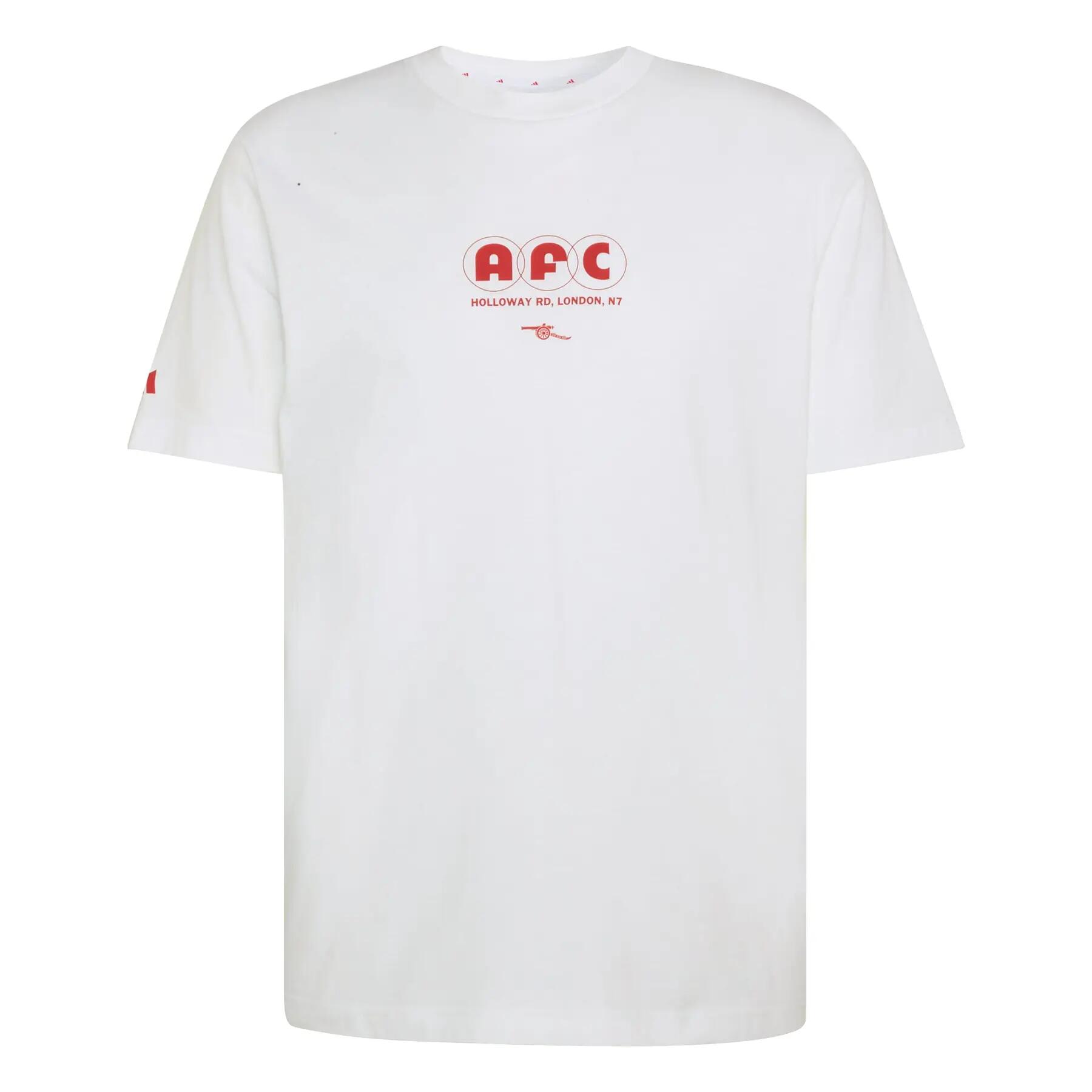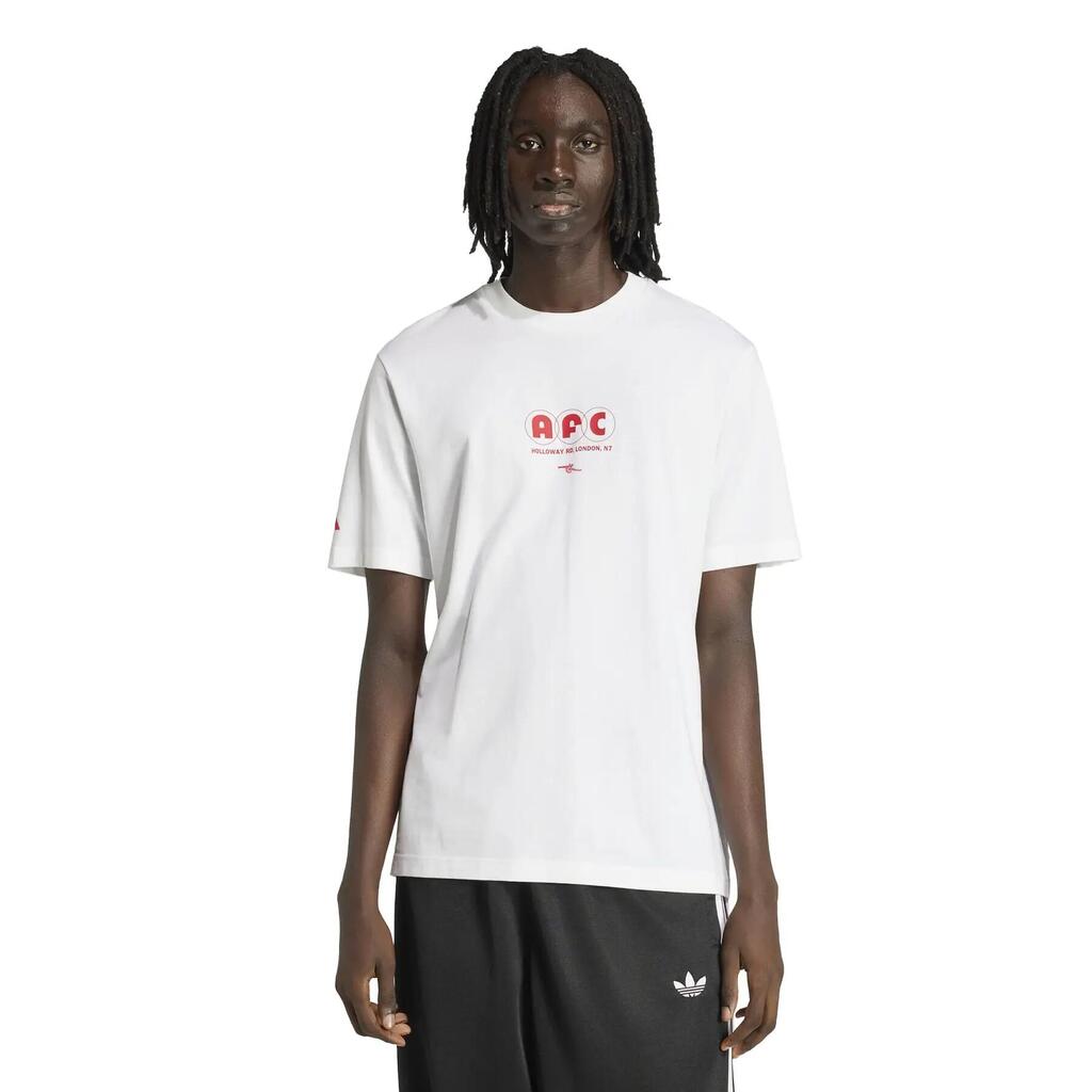 In terms of football culture, the Arsenal FC Seasonal Graphic t-shirt is the perfect piece to show your pride for your team. Whether you're on the pitch or in the stands, this t-shirt embodies your love for the game and the unifying spirit of football. The original design adds a touch of expressive style, while the crew neck offers a classic note for everyday versatility. The fabric is soft against the skin and provides a comfortable feel during active or relaxed days. The standard fit is neither too tight nor too loose, allowing you to move freely and layer up on cooler days. Embrace the spirit of football with adidas, and show your pride on and off the pitch with this essential t-shirt.
