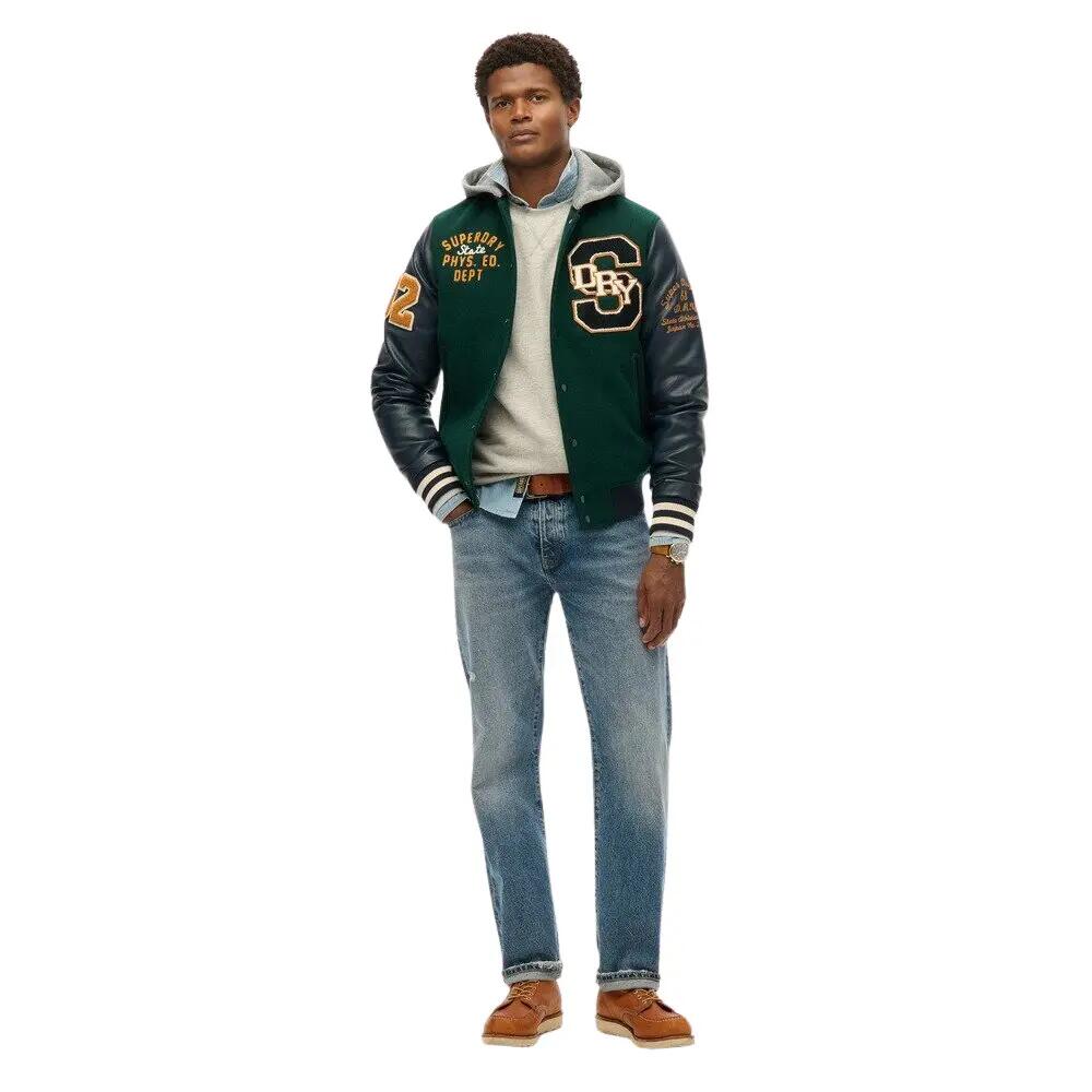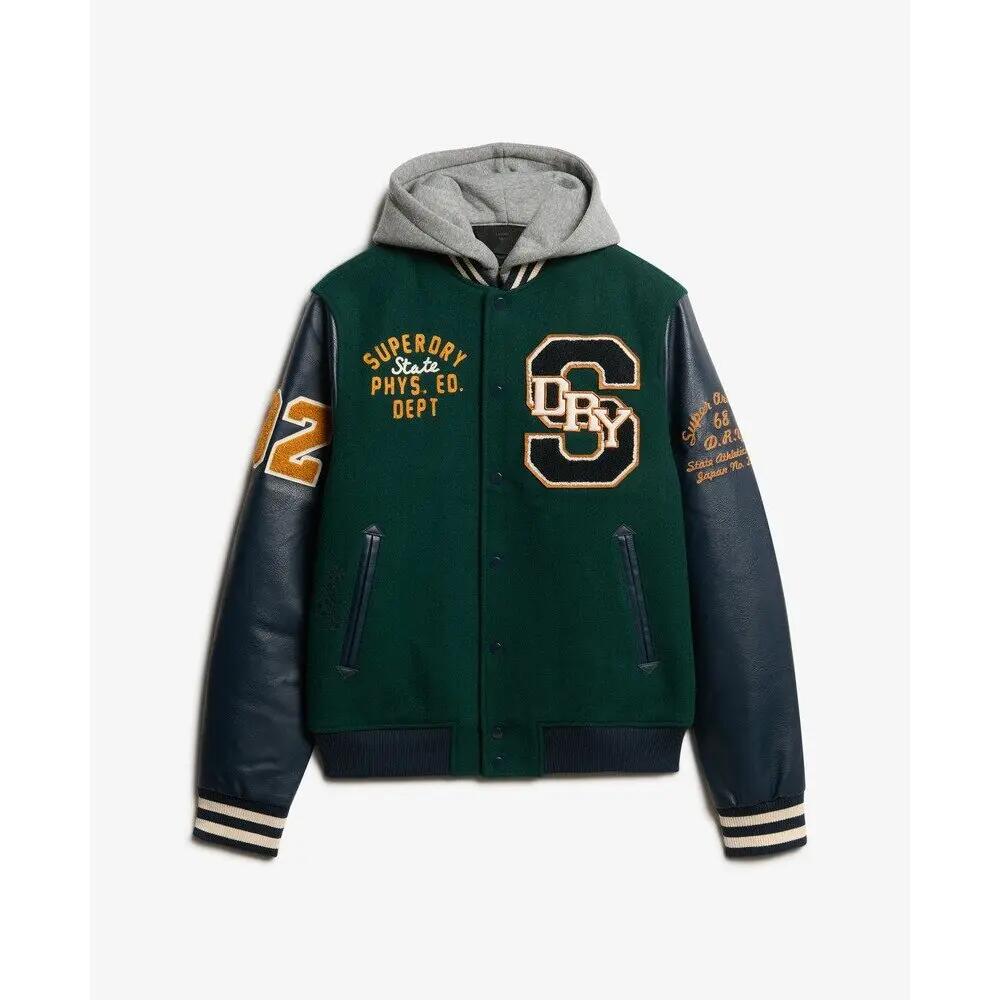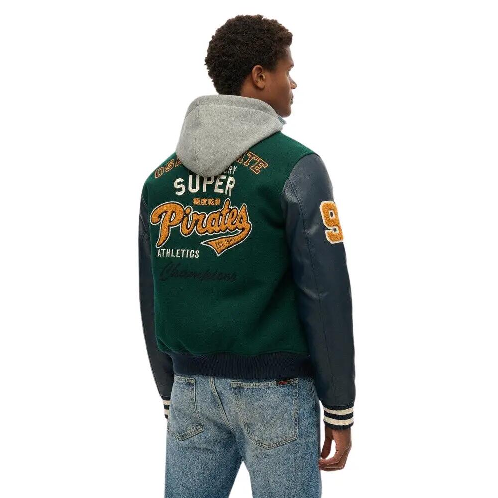 The Superdry College bomber, with a patch and hood, for a relaxed look and perfect fit. Available now.