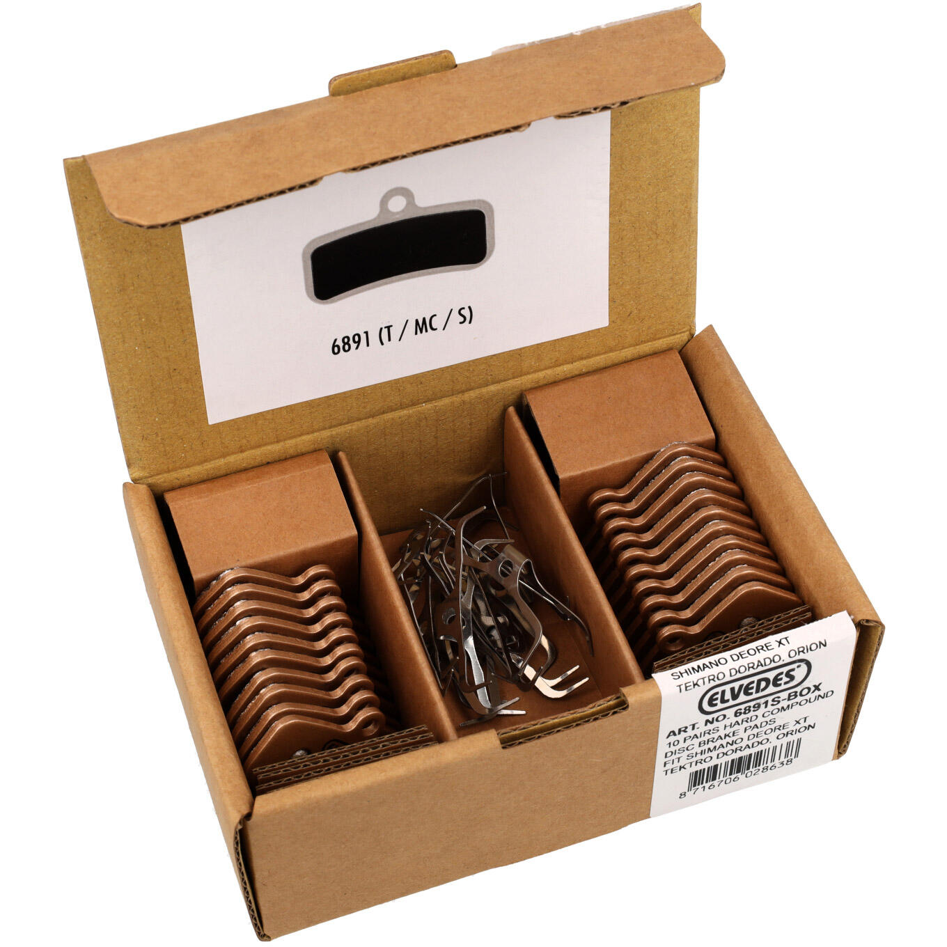 Box of 10 pairs of high-end Metallic brake pads for SHIMANO BR-M810 / BR-M640 with clean lining, developed in-house by the brand. They are made from a clever mix of sintered metal and kevlar to provide great stopping power at very high performance levels in both dry and wet conditions. They offer very good resistance to glazing/fading, no vibrations/no annoying noises, and good respect for the disc. Pre-burnished, these pads provide excellent heat resistance with moderate wear. They are recommended for more extreme use like Enduro / DH / Freeride. The best quality/price reference Made in Holland!!! Elvedes has a very good expertise since 1965 and has specialised in the production of high-end consumables for cycling in Europe… PLUS, they come original with SCREWS / PINS specific to the reference!!!