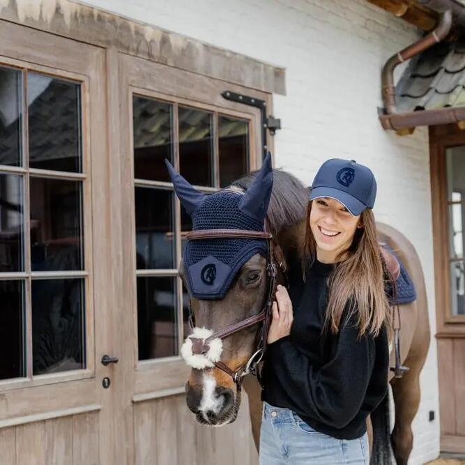 The Fly Veil Wellington 3D is the first fly veil that has a visible Kentucky logo on the front. ,Fly protection ,Quality handknitting ,3D logo on the front of the fly veil ,Extended neck piece to