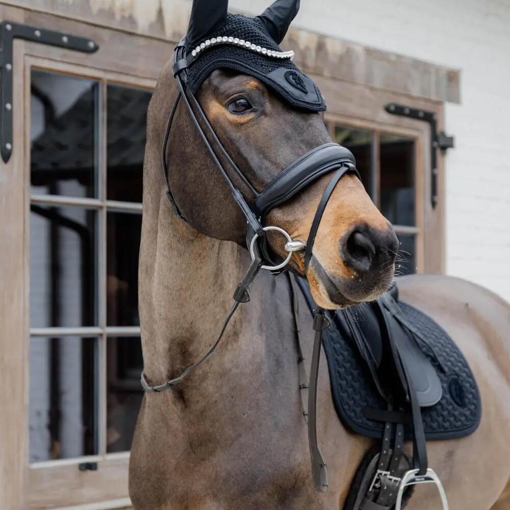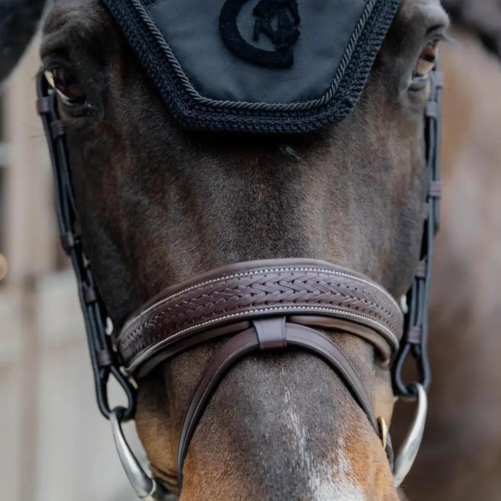The Fly Veil Wellington 3D is the first fly veil that has a visible Kentucky logo on the front. ,Fly protection ,Quality handknitting ,3D logo on the front of the fly veil ,Extended neck piece to