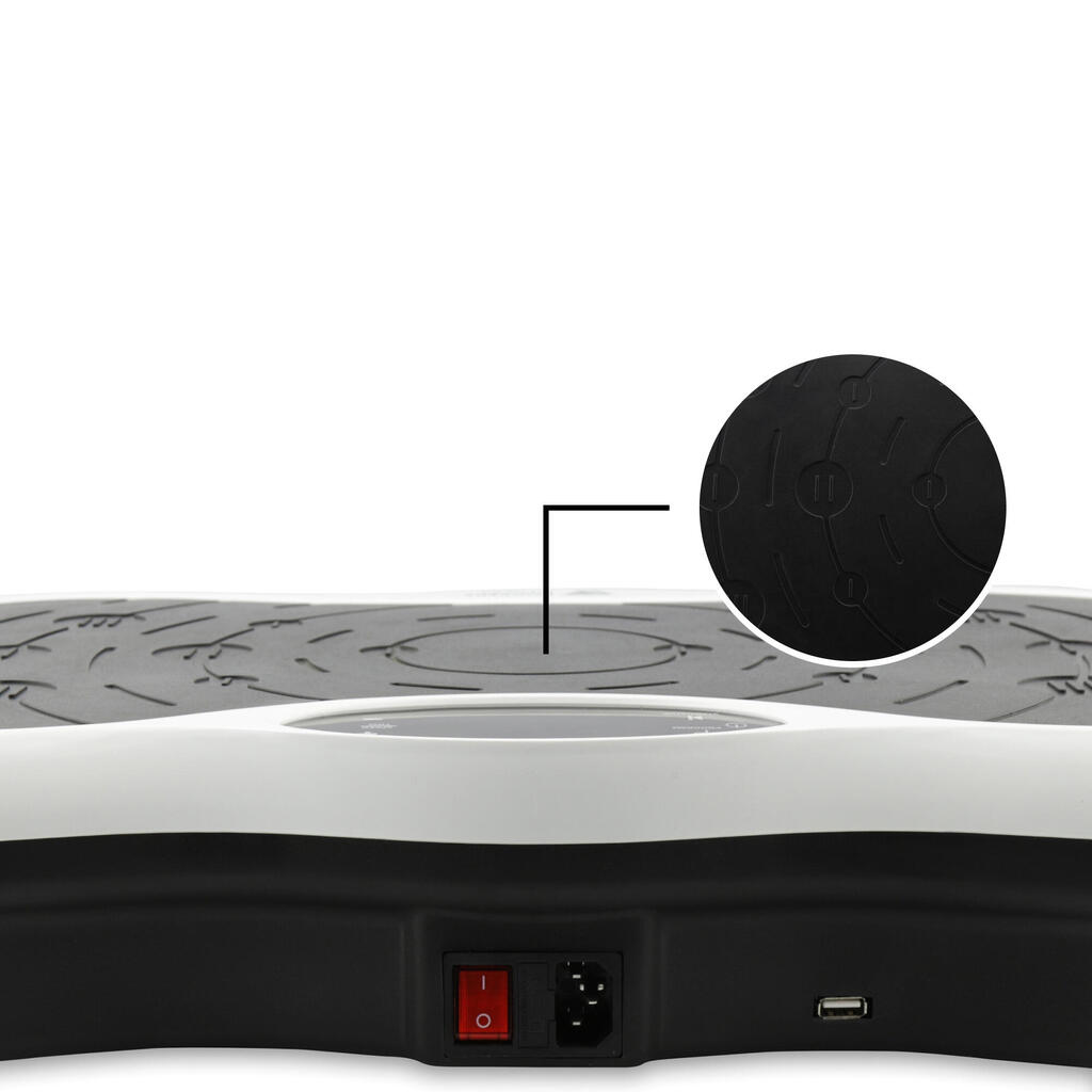 The vibration plate has built-in Bluetooth speakers. This allows you to listen to your favorite music while exercising. The vibration plate also includes resistance bands that allow for multiple exercises for the arms, shoulders, back, core, and thighs. Ideal for intensifying or extending your workout!