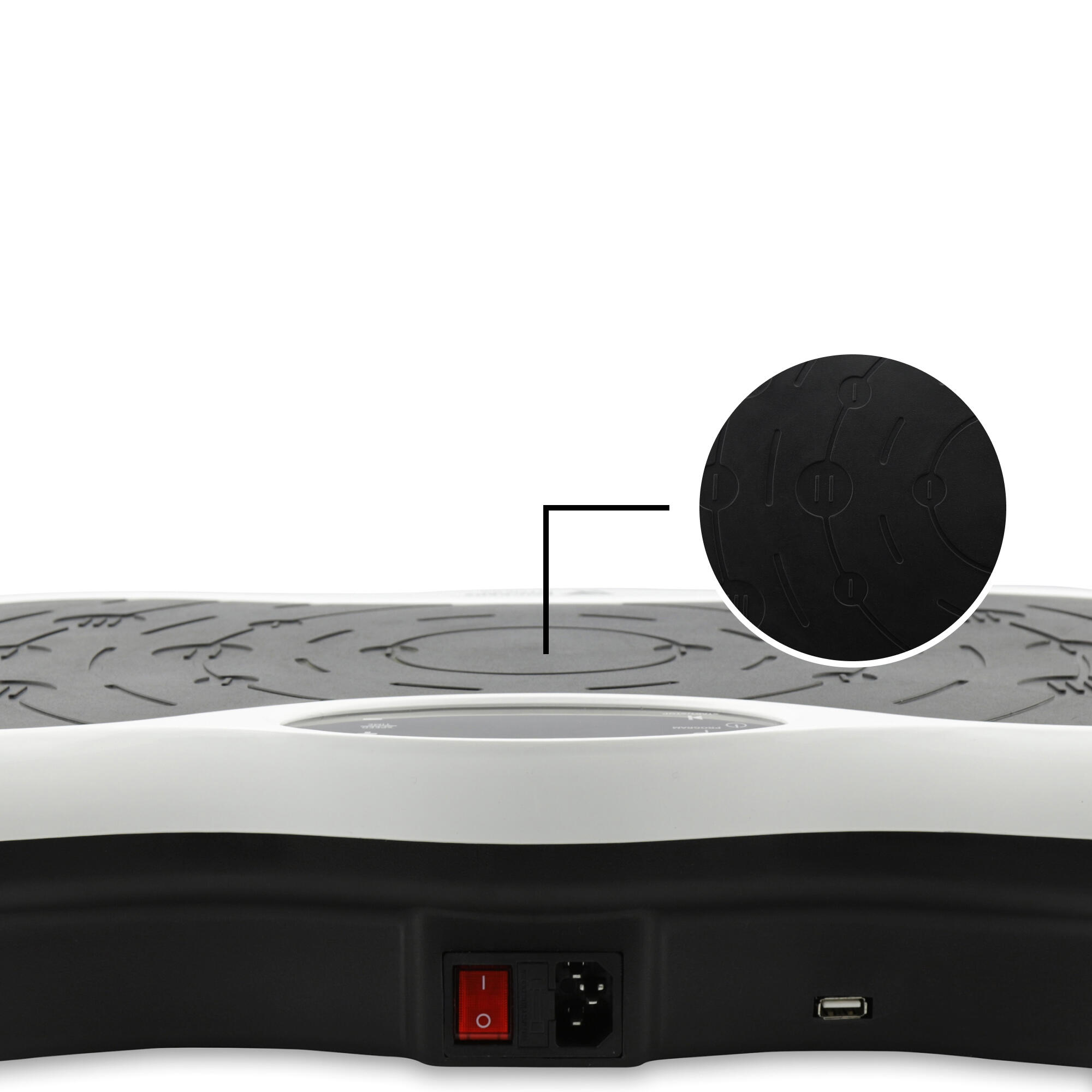 Using the Rockerz Fitness Vibration Plate has many benefits. It's good for fat burning and muscle building, and it improves bone density and blood circulation. It works like this: the rapid vibrations throw you off balance, causing your body to tense muscles to maintain your equilibrium. So you exercise without consciously moving. But you can also use the vibration plate to intensify exercises like squats, lunges, push-ups, and core exercises for greater and faster results. And with the included resistance bands, you can take your workout to an even higher level. The vibration plate has five pre-programmed training programs and a whopping 99 speed levels. You can also use the vibration plate as a relaxing massager after a strenuous workout.