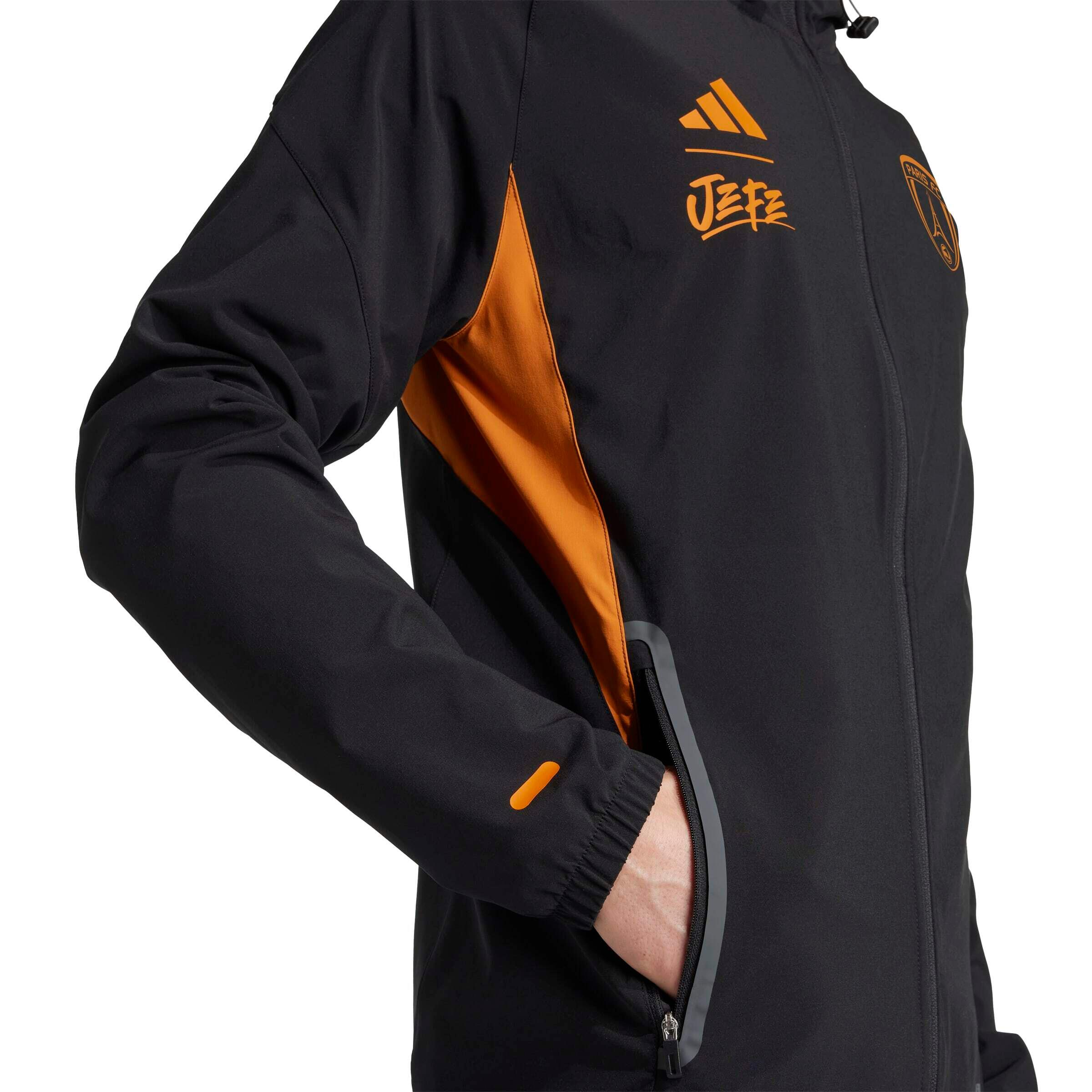 The Paris FC hooded tracksuit jacket 2025/26 is a must-have for all football enthusiasts and Paris FC supporters. Designed by the famous brand adidas, this jacket combines comfort with a modern style, all while proudly showcasing the club's colours and emblem.