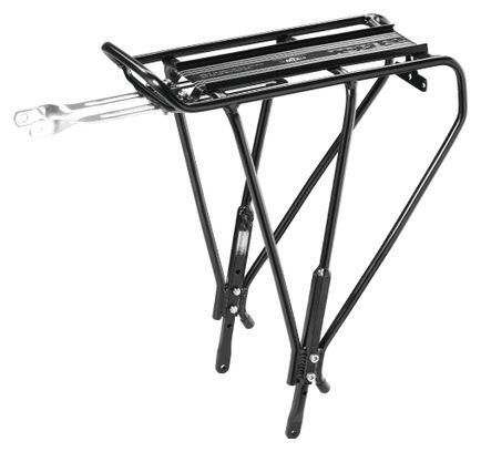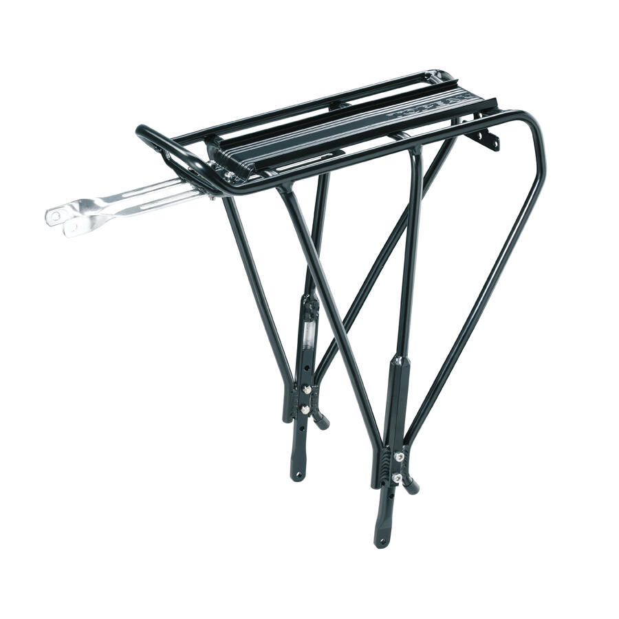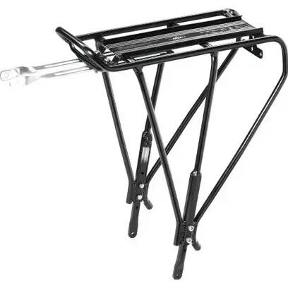 This one-size-fits-all aluminum tubular rear rack is equipped with adjustable legs to fit most 24" to 29" wheel MTB and 700C touring bikes