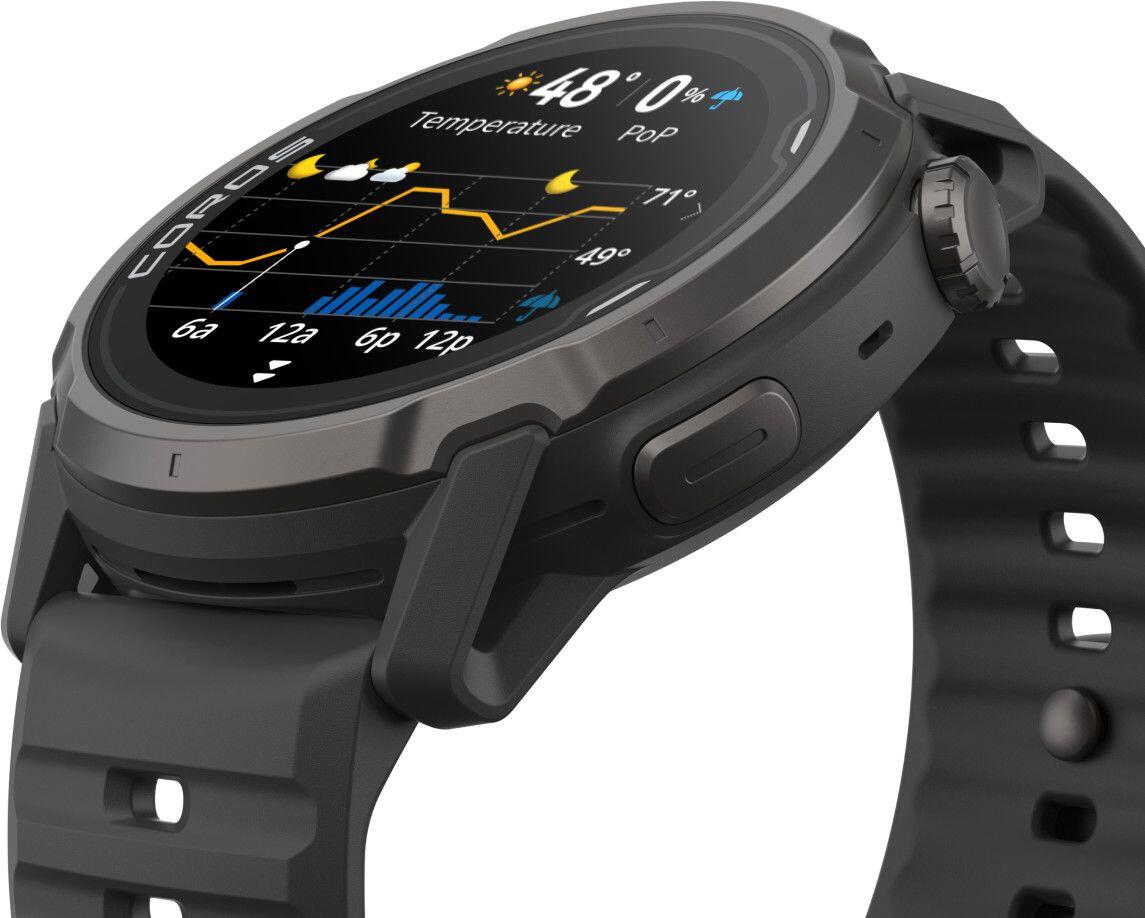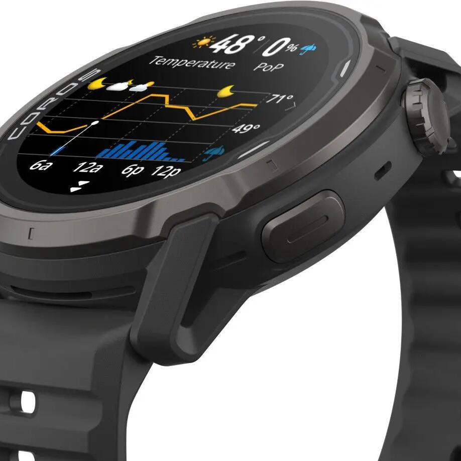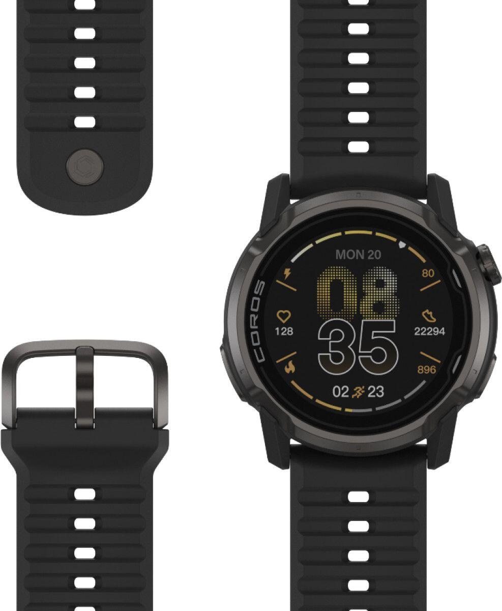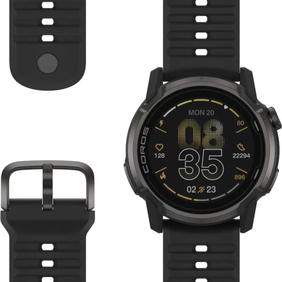GPS Watch Coros APEX 4 is the ultimate mountain sports watch for athletes who train with purpose and precision for train running, ski touring, alpine climbing, steep vertical training or MTB all mountain. The Coros APEX 4 delivers ultra-precise GPS, best in class battery, zero-lag mapping, a microphone and speaker, plus advanced training and recovery tools to help you take on your biggest goals.The Coros APEX 4 features an alpine-grade engineering with lightweight titanium, reinforced lugs and sapphire glass.Made for mountain, APEX 4 delivers industry-leading accuracy across GPS, pace, heart rate, and elevation tracking, along with the ultra-long battery life you have come to expect from Coros.With the vertical GPS algorithm, the dual-frequency tracking, a precision heart rate sensor and a dual-range barometer for sharper elevation and weather data, you won't have to worry about any missing meters when your activity is finished. Made for mountain endurance sports as trail running, climbing or skiing, the watch provides on-device global maps, 3D terrain views, real-time effort pace, route planning, fitness metrics, four climbing modes, advanced map layers to stay oriented on remote descents.With up to 41 hours of All Systems GPS, you'll have full confidence in your watch in all your long adventures. APEX 4 pairs an always-on, 3rd-gen MIP display with deeper colors and higher contrast. It is build to stay clear in sun, snow or shadows.APEX 4's real-time map engine renders instantly, delivering global landscape and topographic maps with turn-by-turn guidance, trail names and POI's.Adventure journal logs voice pins, terrain photos, and key details from your effort so you can review what you saw, said and did. Plan better lines, adjust your strategy, and leverage more recon for your next big goal.Take hands-free calls, record voice pins, or have your activity alerts played out-loud so you never have to break your attention.Connected with Coros app, the watch collects your health and training data to give you your training status, your training load, and your base fitness for your long-term aerobic fitness. Easily link to apps like Strava and Apple Health, stay updated with calls and texts, and control your camera—all from your watch.Product benefits :41 hours of GPS battery, enough to get you through your longest days.The Coros most powerful mapping with free Global Maps, street and trail names, turn-by-turn navigation, and POI's.Precision dual-frequency GPS with vertical algorithms built for alpine terrain and sheer walls.1.2 inch Memory-in-Pixel touch screen, with sharp contrast and easy readability in sun, snow, or shadows.A titanium bezel and sapphire glass deliver a lightweight feel with alpine-grade durability.Built-in speaker and mic for pace alerts, Voice Pins, and hands-free calls.Track and manage your recovery, HRV, sleep, SpO2, and training load for a 360 degree view of your training.Study every step of your training and racing with 3D Flyovers and Adventure Journaling.Details : Screen size: 1.2 inch. Screen resolution: 240 x 240 pixels. Display type: 3rd generation Memory-in-Pixel touchscreen. Glass material: Sapphire Glass. Case material: Fiber-reinforced polymer. Bezel material: Grade 5 Titanium Alloy. Bracelet material: Silicone. Bracelet type: Quick release, 22 mm. Dimensions : 42.6 x 42.6 x 14 mm. Weight: 56 g. Water resistance: 5 ATM (suitable for surface water activities, not diving). Connectivity: Bluetooth (phones and accessories). Internal memory: 32 GB. Data synchronization: Wi-Fi / Coros App. Third-party applications: Nike Run Club, Komoot, TrainingPeaks, Strava, Relive, adidas Running, Apple Health, Stryd, Final Surge, Runalyze, Running Quotient, Decathlon (non-exhaustive list). Operating temperature: -20°C to 50°C. Storage temperature: -20°C to 60°C. Color : Black.Battery life : Charging time: less than 2 hours. High mode with all active systems (GPS, GLONASS, Galileo, Beidou, QZSS): 34 hours / 10 hours (with offline music). Endurance mode (GPS, GLONASS, Galileo, Beidou, QZSS) : 41 hours / 11 hours (with offline music). Max. mode with Dual frequency (GPS, GLONASS, Galileo, Beidou, QZSS): 26 hours / 9 hours (with offline music). Daily mode: 15 days (with daily stress level).Sensors : Speaker to take hands-free calls or play activity alerts out-loud. Dual-Microphone with Noise Reduction. Optical heart rate sensor (may not work on tattoos). Barometric
