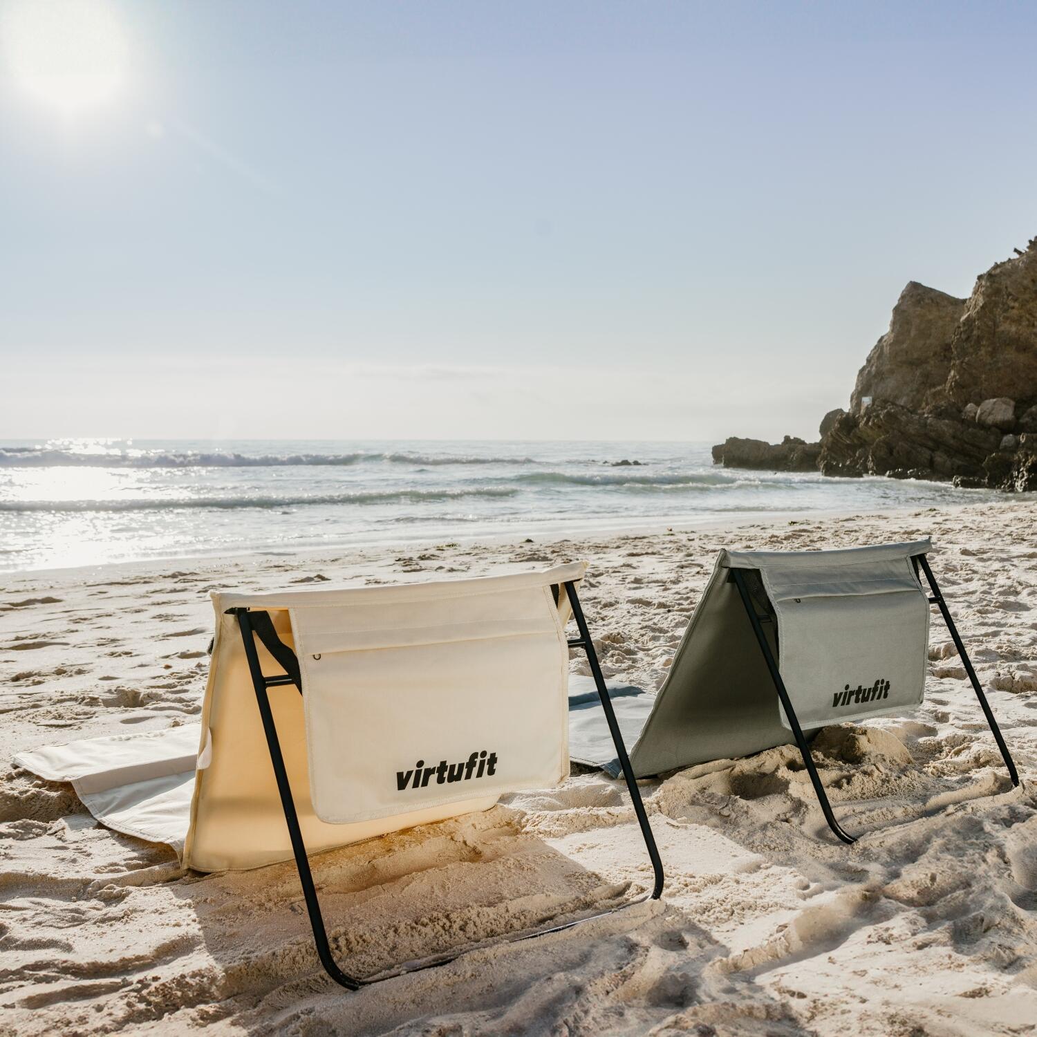 The VirtuFit Beach Mat combines functionality and comfort in one. The two elastic bands ensure your towel does not blow away, and the pocket on the back is for storing all your essentials. The durable polyester ensures the mat lasts a long time, even with frequent beach use. The adjustable backrest gives you the flexibility to adjust your sitting or lying position, allowing you to always relax in the most comfortable posture. Thanks to the smart foldable design and shoulder carrying strap, the beach mat is easy to take with you. Whether you are spending a day at the beach, planning a picnic in the park, or just want to relax in your garden, the VirtuFit Beach Mat is ideal for all your outdoor activities.