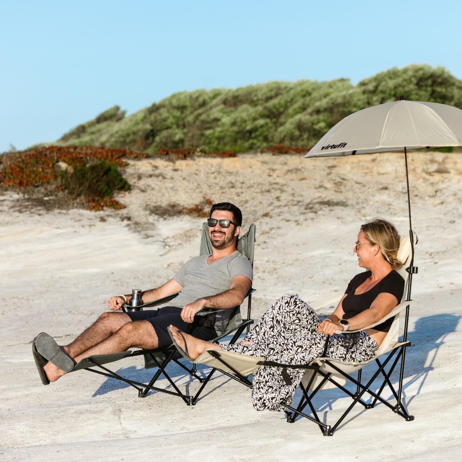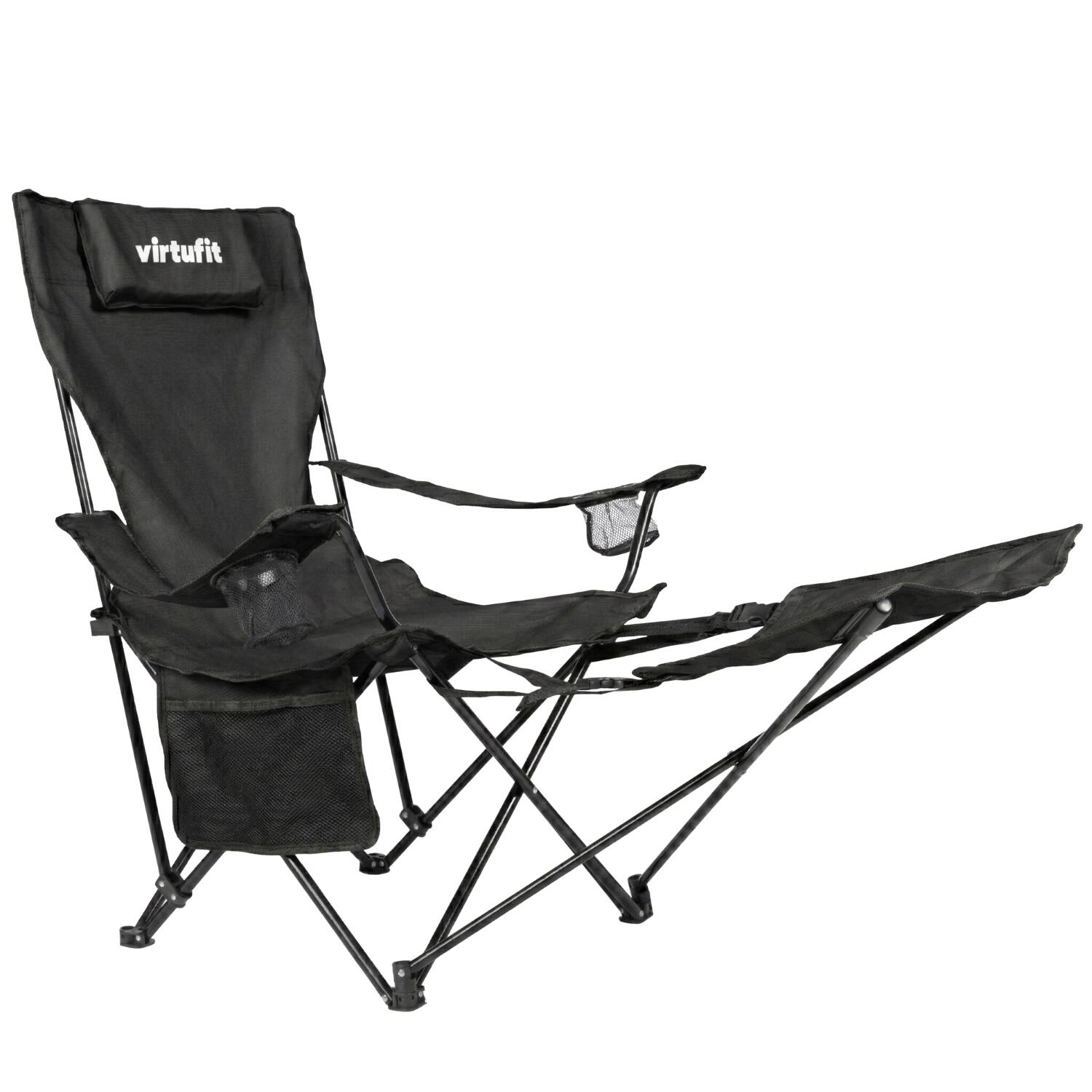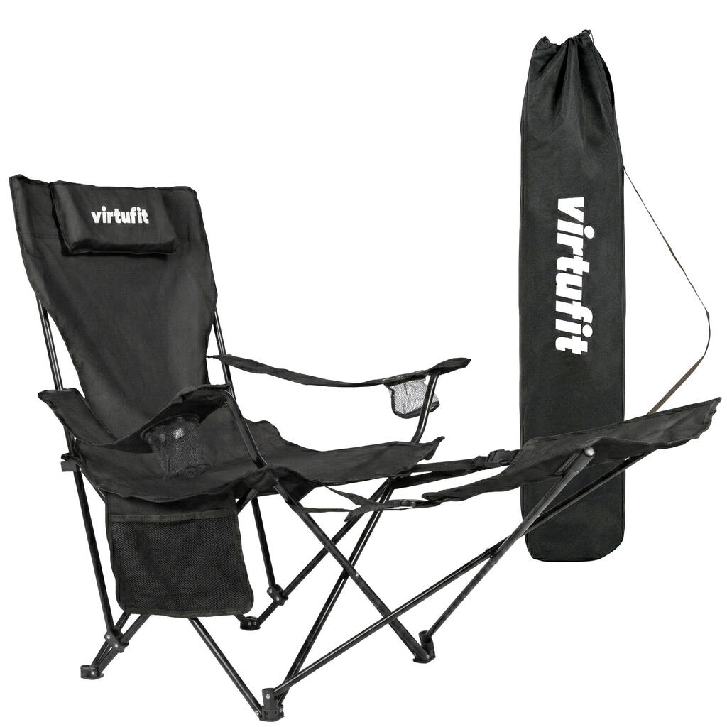 The VirtuFit Foldable Camping Chair with Footrest is your perfect companion for any outdoor activity, whether you are camping, fishing, or just relaxing on the sidelines of a sporting event. This versatile chair combines comfort with functionality and is designed to be taken everywhere, including a sliding footrest for extra comfort.