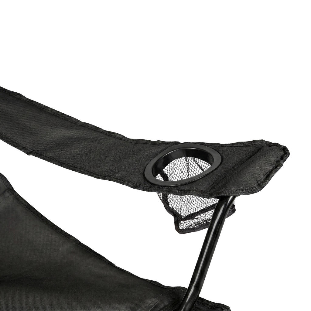 This foldable leisure chair has generous dimensions of 53 x 127 x 83 cm, with a stable structure thanks to 16 mm thick black powder-coated steel tubes. The seat, backrest, and footrest are made of strong polyester, a material known for its durability and resistance to the elements. The whole is completed with a handy carrying bag, also made of strong polyester, making the chair easy to transport and store.