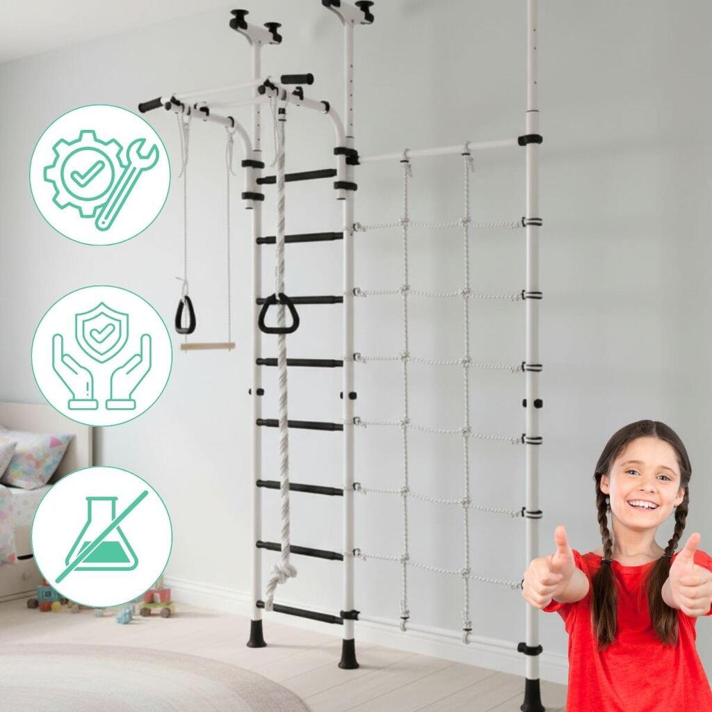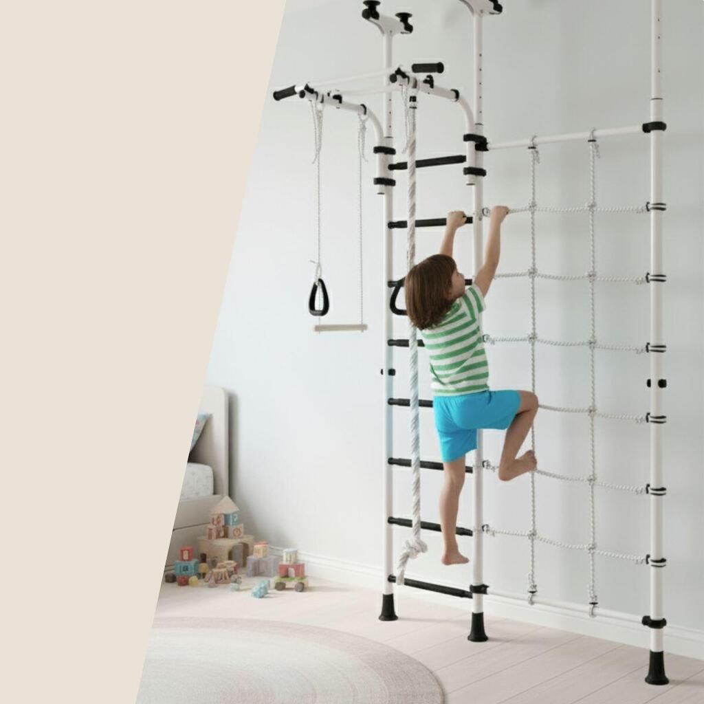 The Merkury 3 Gymnastics Ladder demonstrates how a single device can support children's physical and mental development in many ways. Kids develop new skills such as climbing, swinging, or hanging, improving dexterity, muscle strength, fitness, and flexibility.
