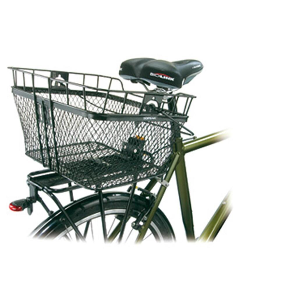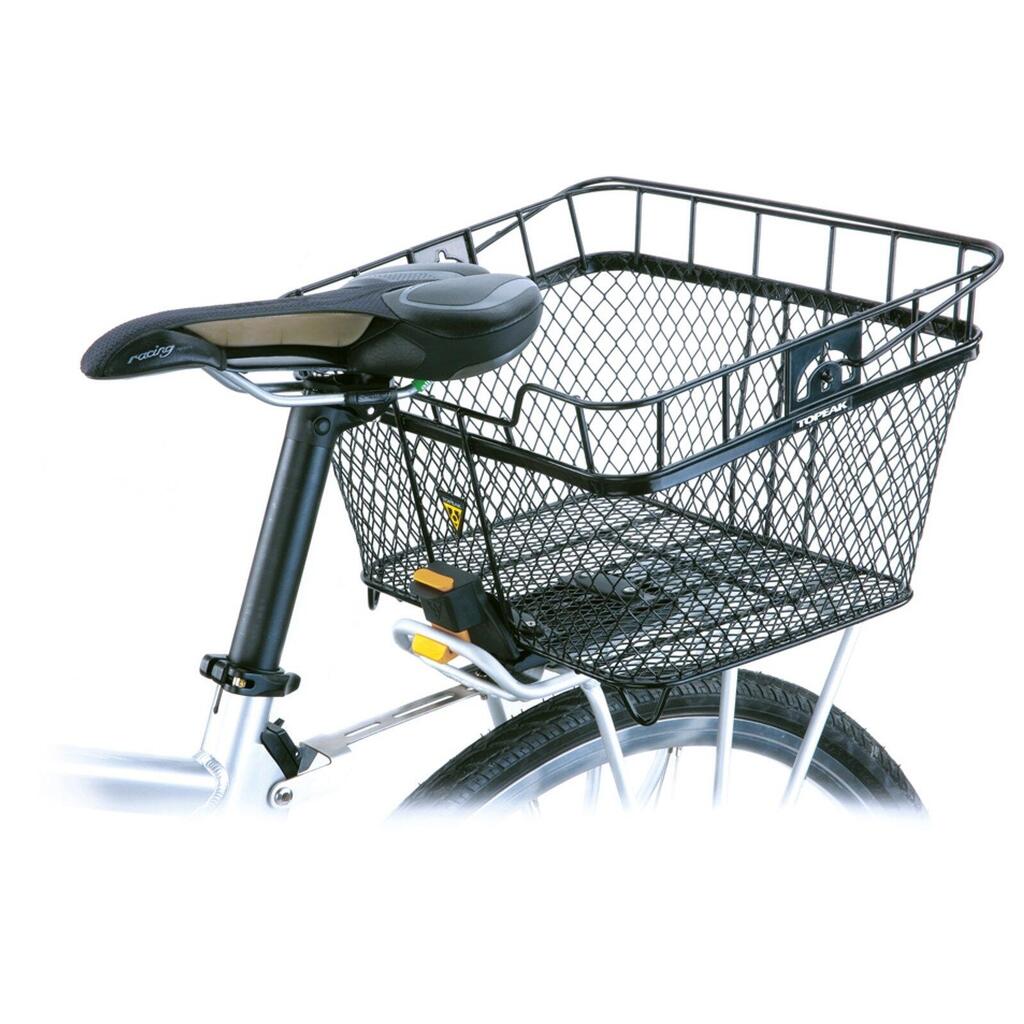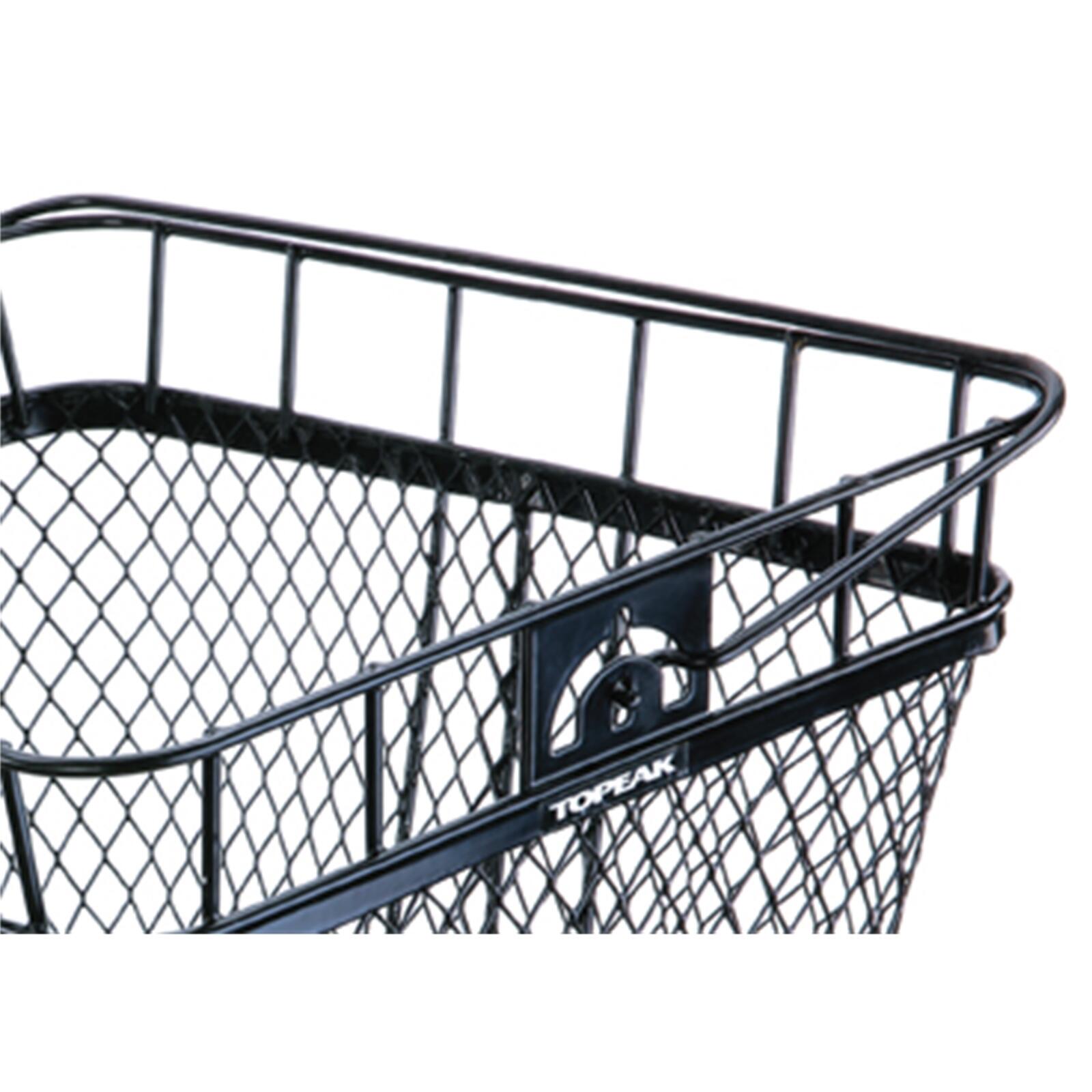 Metal basket mounts to rear rack with the MTX QuickTrack™ system