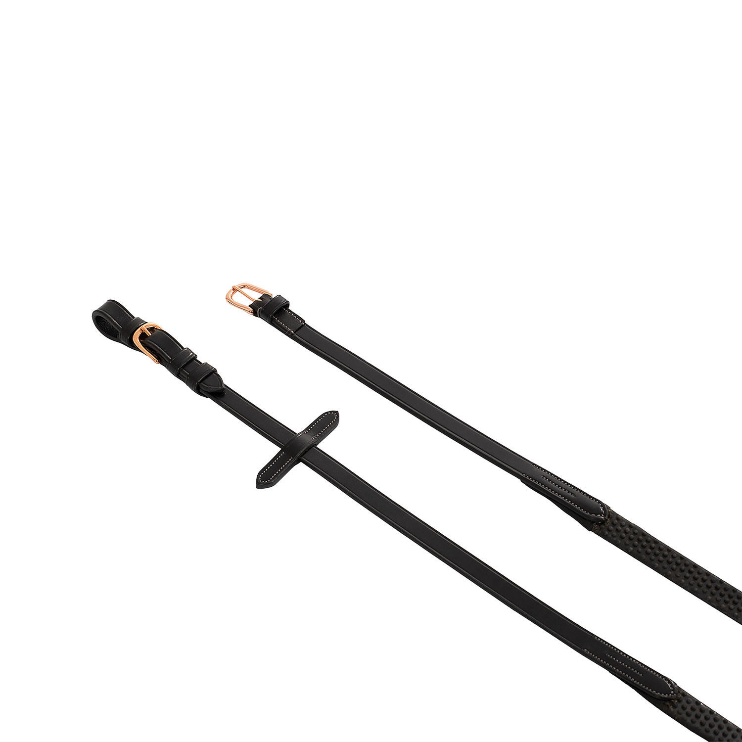 Elegant and durable reins made from soft Italian leather with rose gold buckles ensure a secure grip and optimal comfort during every training session.