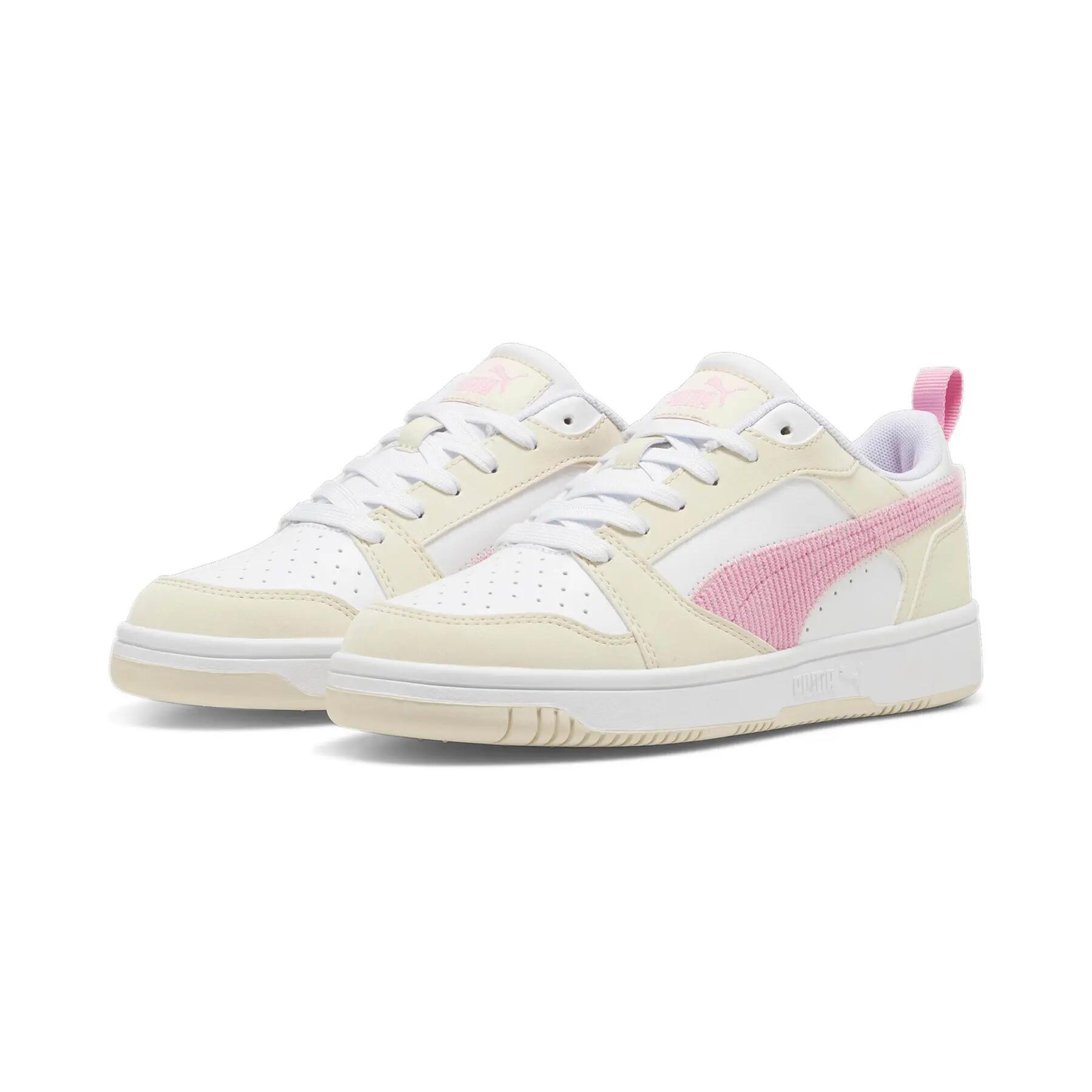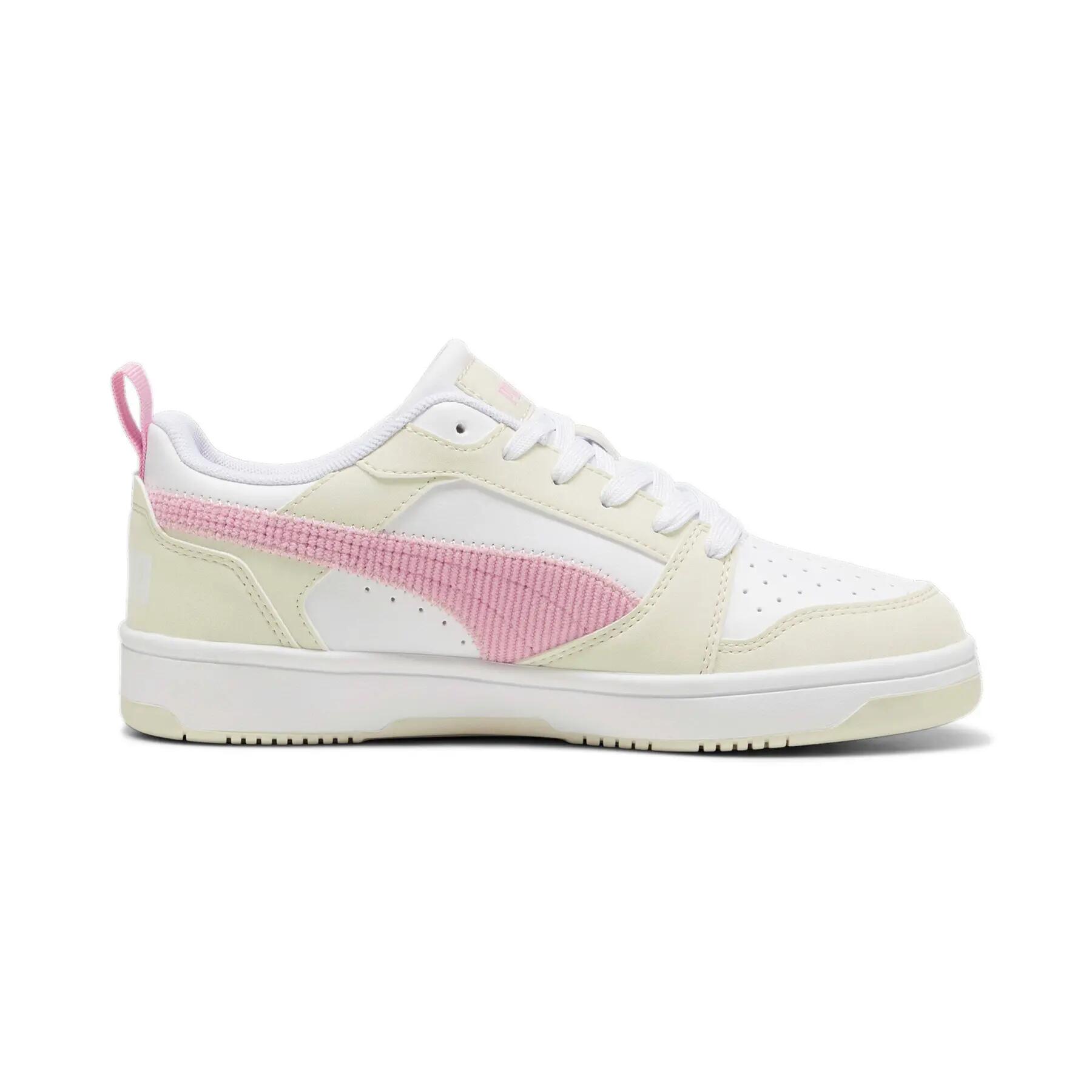 Discover the retro and cool style of the kids' sneakers Puma Rebound V6 Lo Cord, inspired by the world of basketball. Available now!