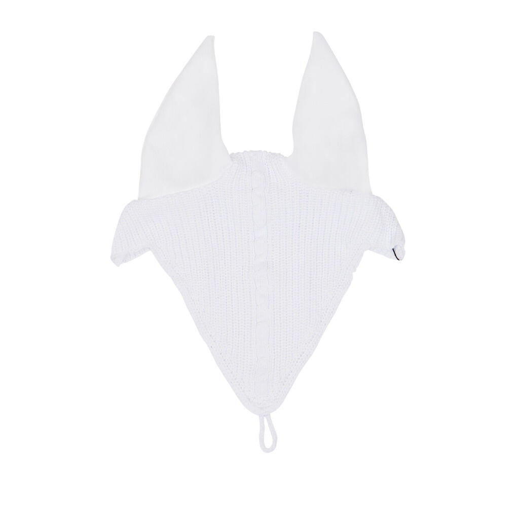 Horse crochet ear bonnet with tie strap at the noseband