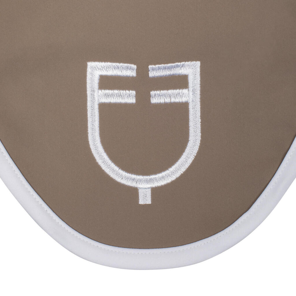 White technical ear bonnet with a comfortable fit, protects the horse from insects and reduces noise, ideal for maintaining focus during training.