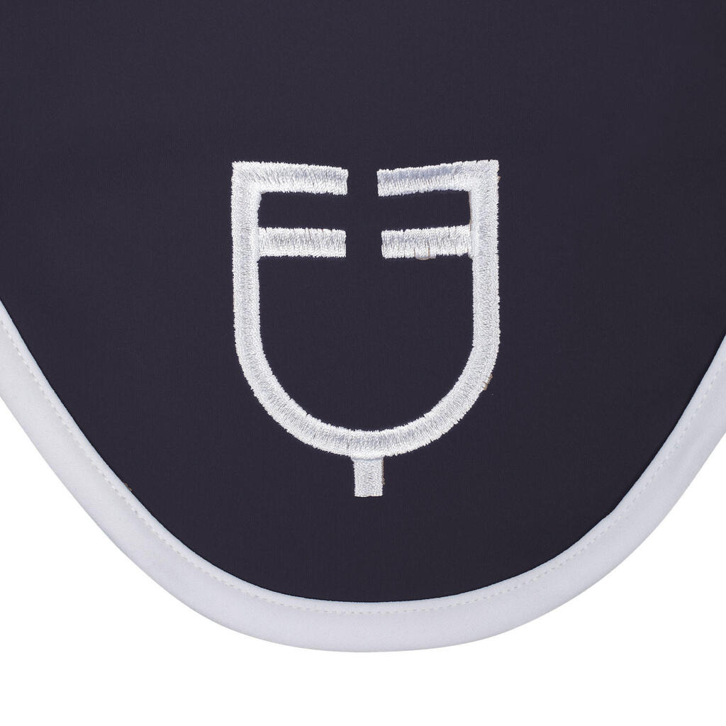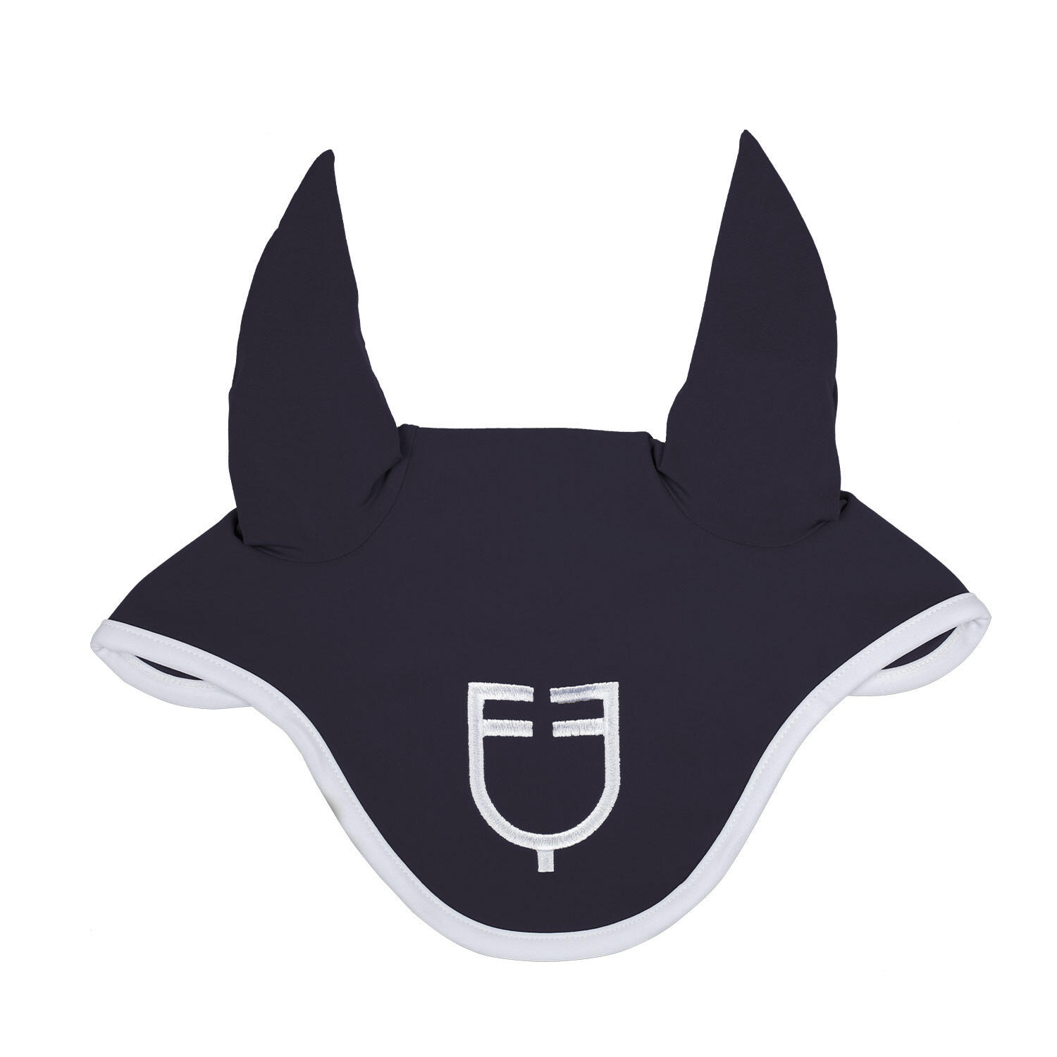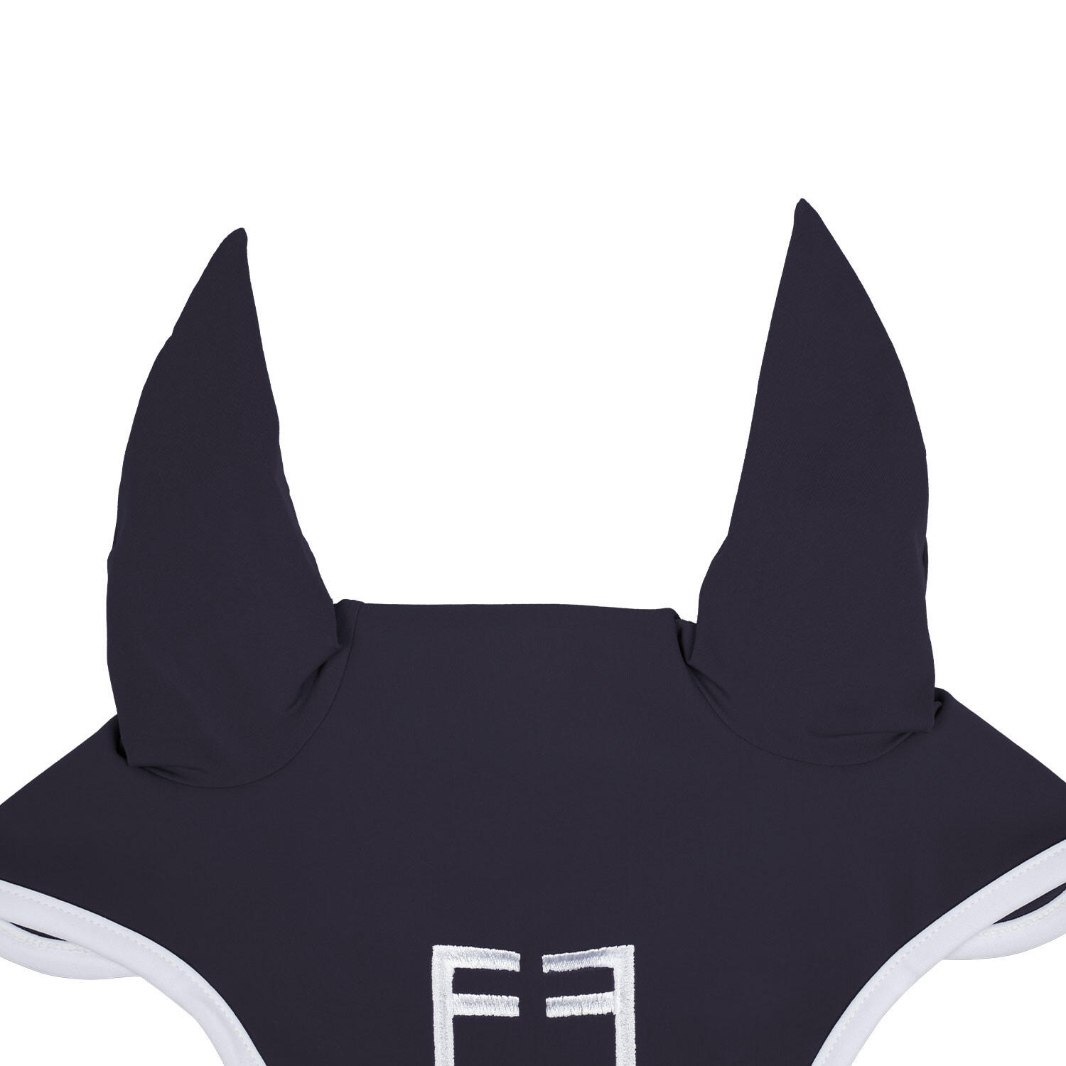 White technical ear bonnet with a comfortable fit, protects the horse from insects and reduces noise, ideal for maintaining focus during training.