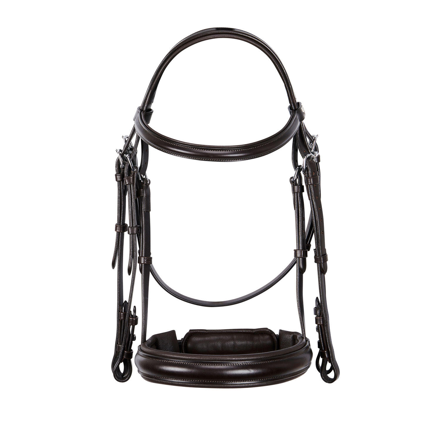 Anatomical design distributes pressure evenly; stainless steel buckles and pull-back noseband offer increased safety and convenience during training.