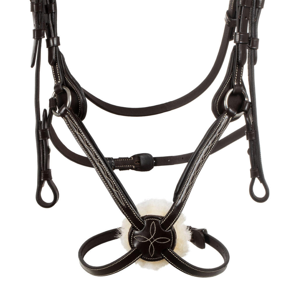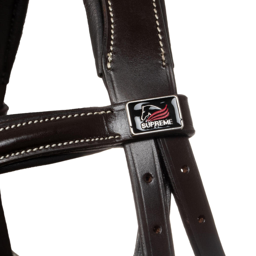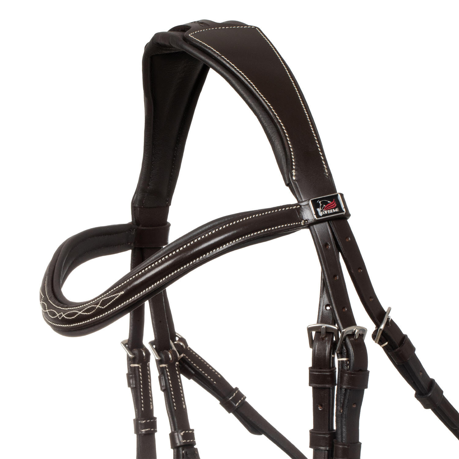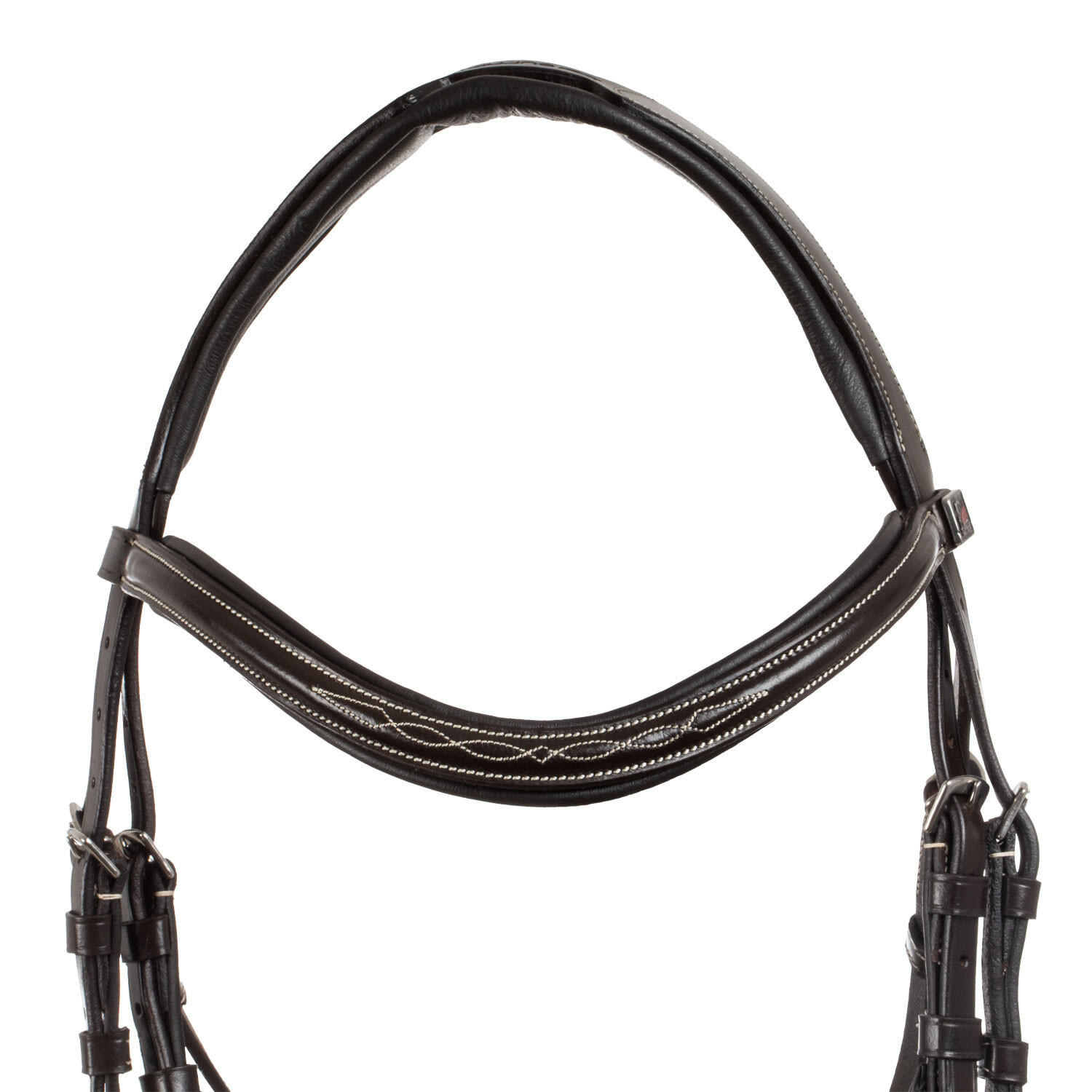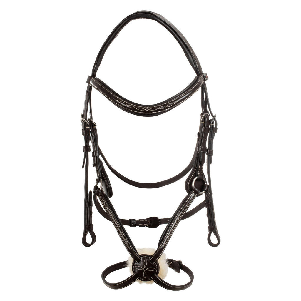 Refined Mexican bridle made of fine leather, featuring a curved padded noseband to provide optimal comfort and control during every horse training session.