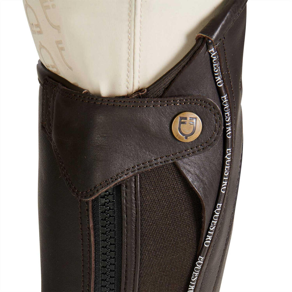 Maximum grip thanks to the elastic band, ideal for competitions and training. Secure closure with zip and buttons. Contrasting details for a distinctive Equestro style.