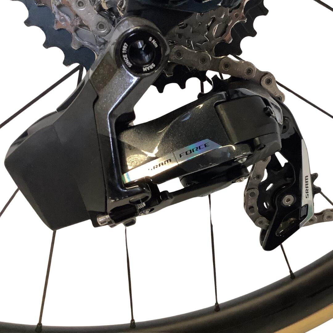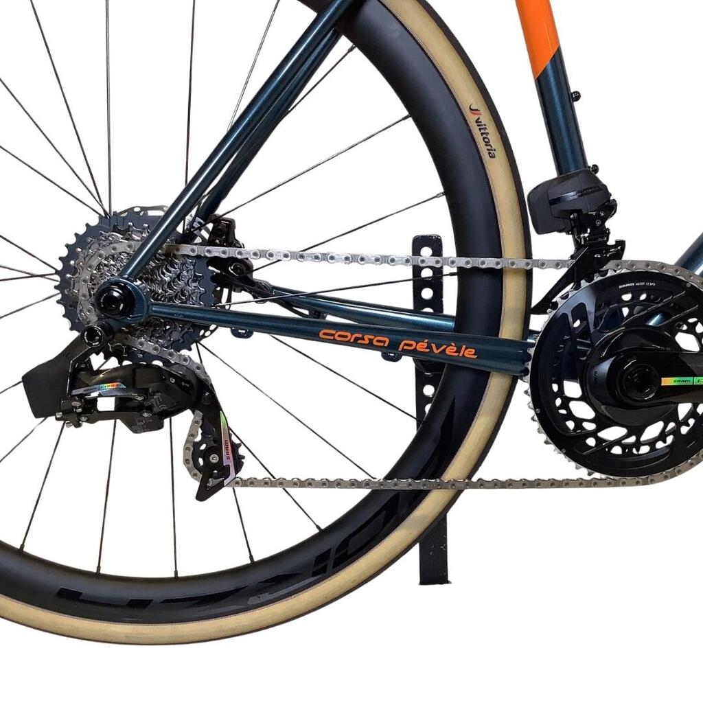 EXCELLENT CONDITION. Enjoy your rides with the Eddy Merckx Pévèle Corsa bicycle. This bike is equipped with a Sram Force AXS 2x12 speed drivetrain and disc brakes.