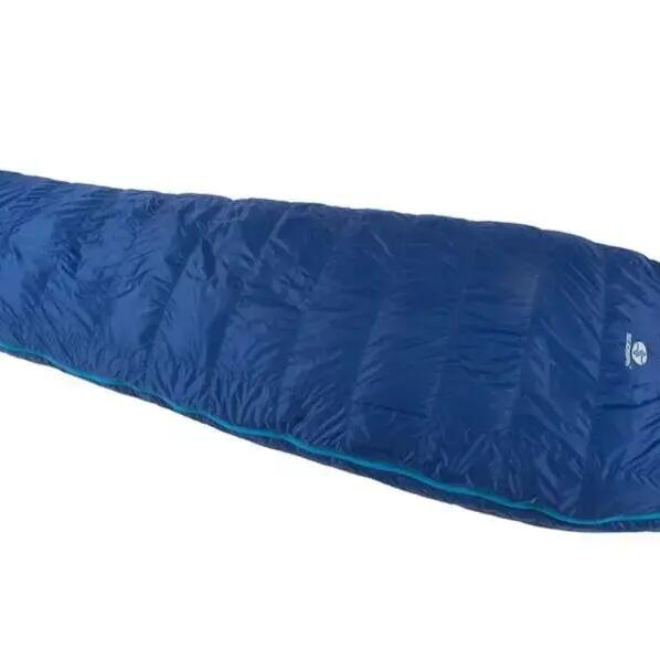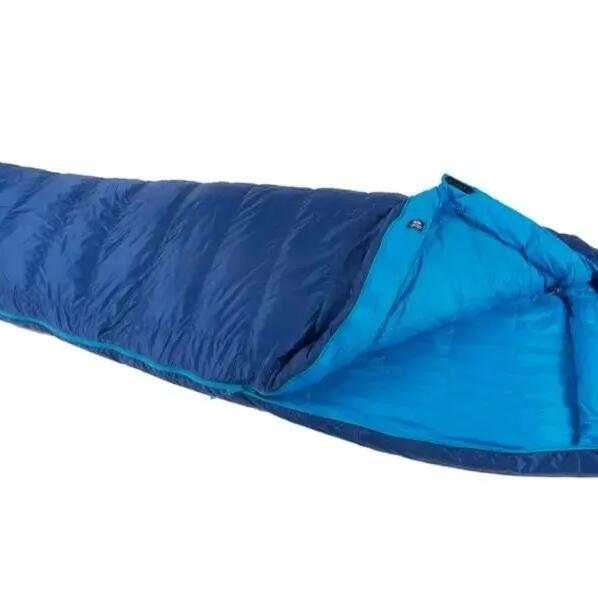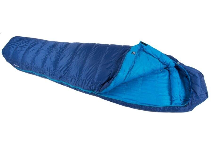 A down sleeping bag for a wide range of travelers, adventurers, and hikers, with a new design, a uniquely cut concept, and premium down that provides lightweight sleep and extra comfort.