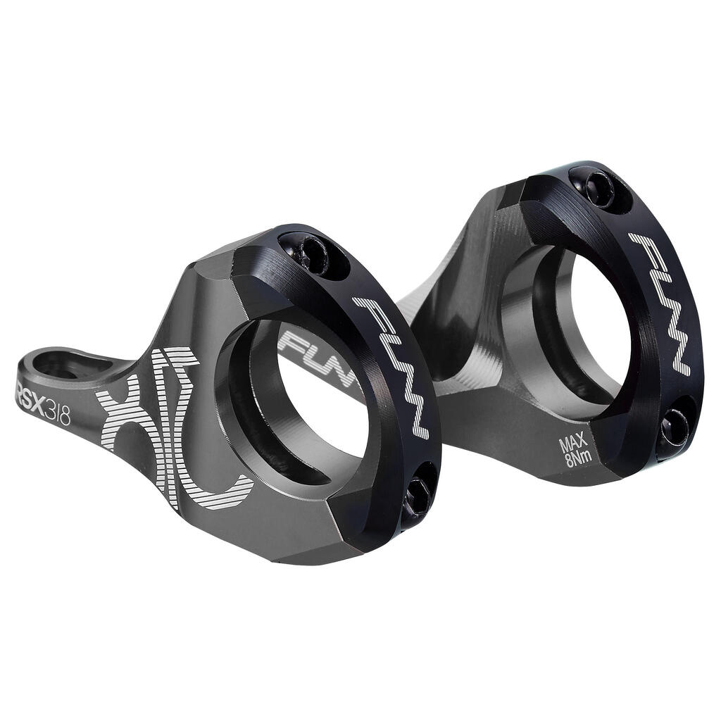 Discover the powerful Funn RSX stem for mountain bikes, made from aerospace 6061-T6 alloy and CNC machined for optimal trail performance.