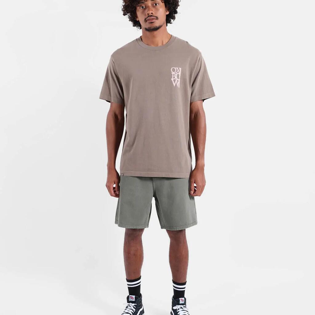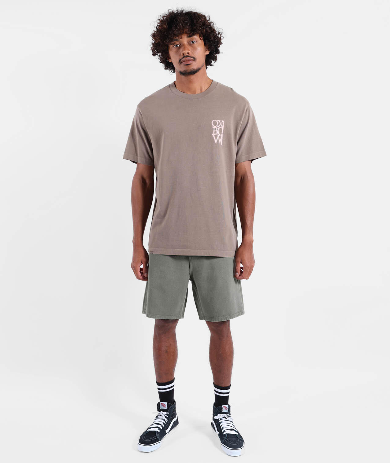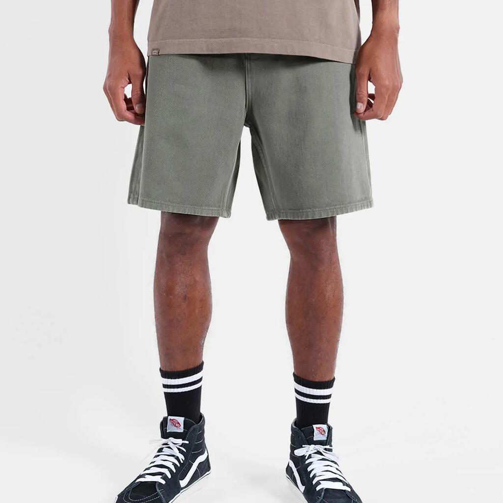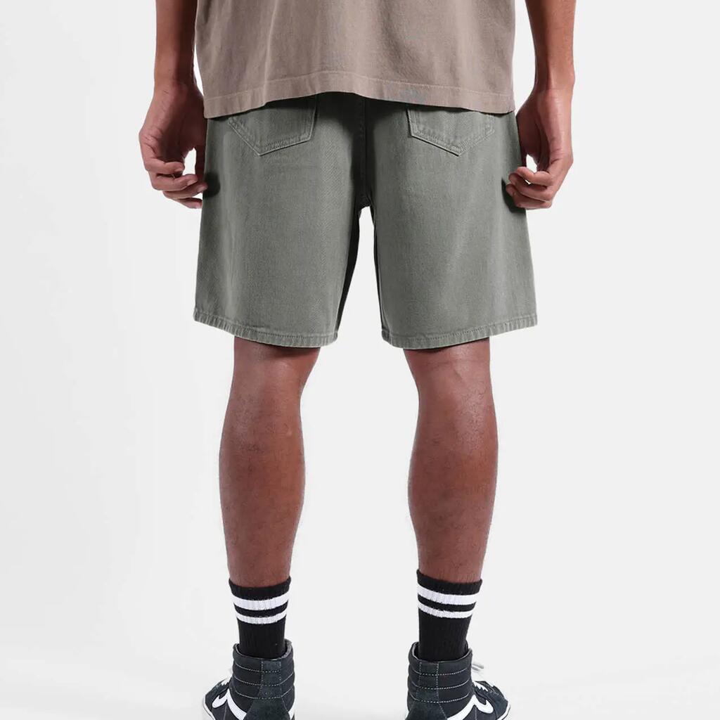 Five-pocket shorts, fixed waistband with belt loops, zip fly, side pockets and patch back pockets, thick twill fabric, dip-dyed and washed for faded color effect, length 20''/52cm