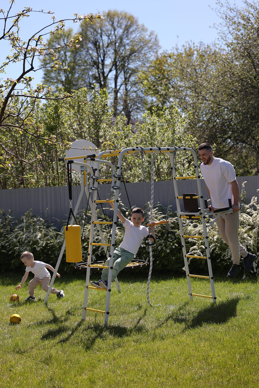 Playing and exercising together in the garden strengthens family bonds, encourages teamwork and healthy competition, and helps children develop strength, coordination and confidence. This multifunctional outdoor playground brings many favorite activities together in one place.