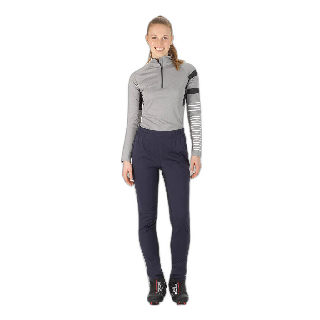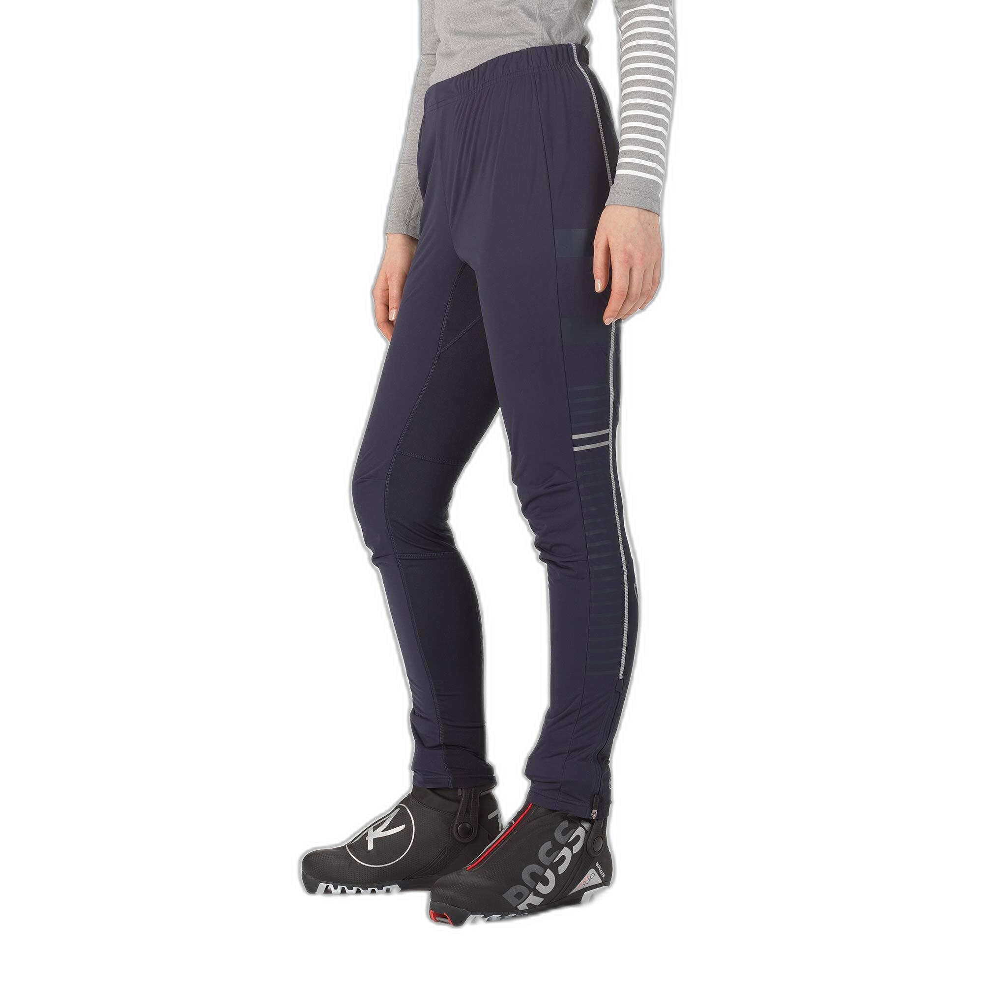 Designed for the demands of Nordic skiing, running and hiking, the Poursuite Rossignol women's pant offers wind and weather protection on Nordic trails and slopes. Its lightweight construction with stretchy inserts at the back of the knees allows for complete freedom of movement. The 37.5® technology regulates your temperature and perspiration and provides quick drying while walking, sliding or hiking. Elastic waist with drawstring and zippered ankles.