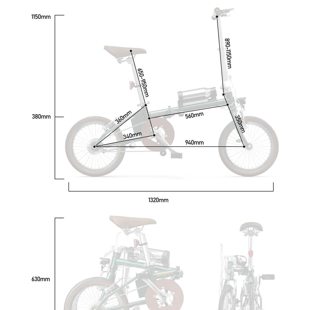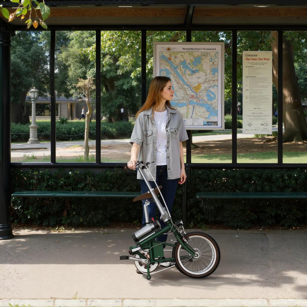When folded, the bike measures 820*370*580mm, creating a minimal footprint for storage in apartments, offices, or public transportation. The folding mechanism allows quick transformation from riding mode to compact form within seconds.
