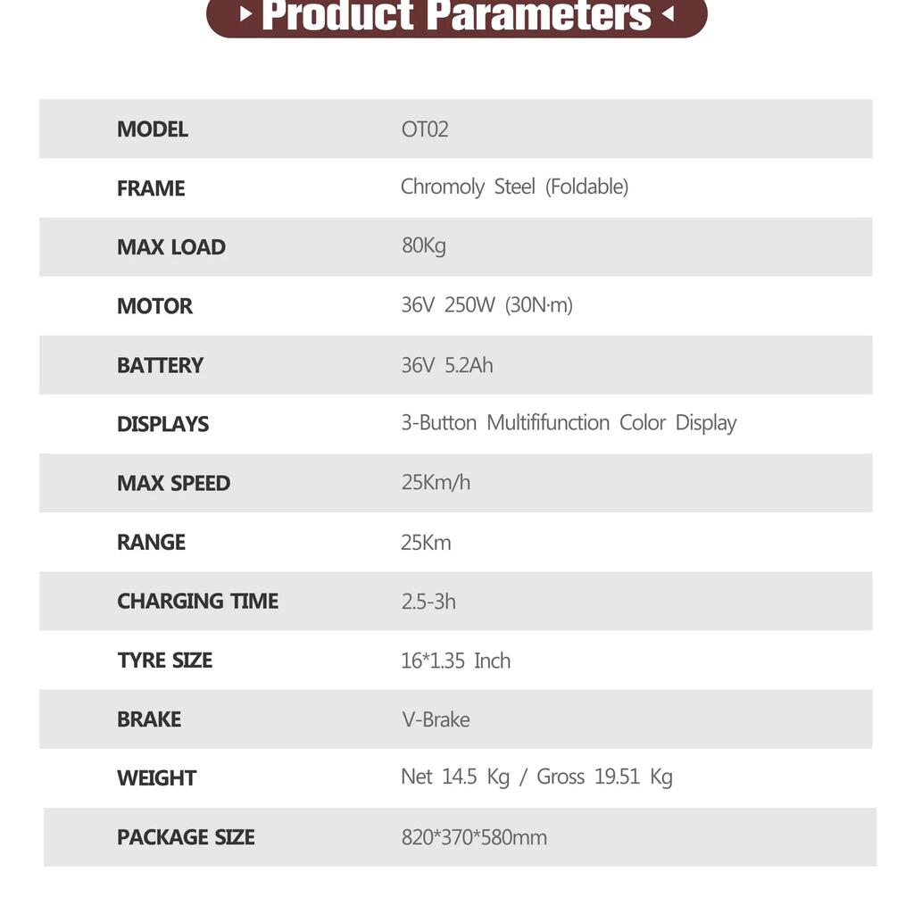 ONESPORT OT02 16 Inch Lightweight Folding E-Bike, 36V 250W Torque Sensor, 14.5kg Ultra-Light, Chromoly Steel Frame, City Portable Electric Bicycle