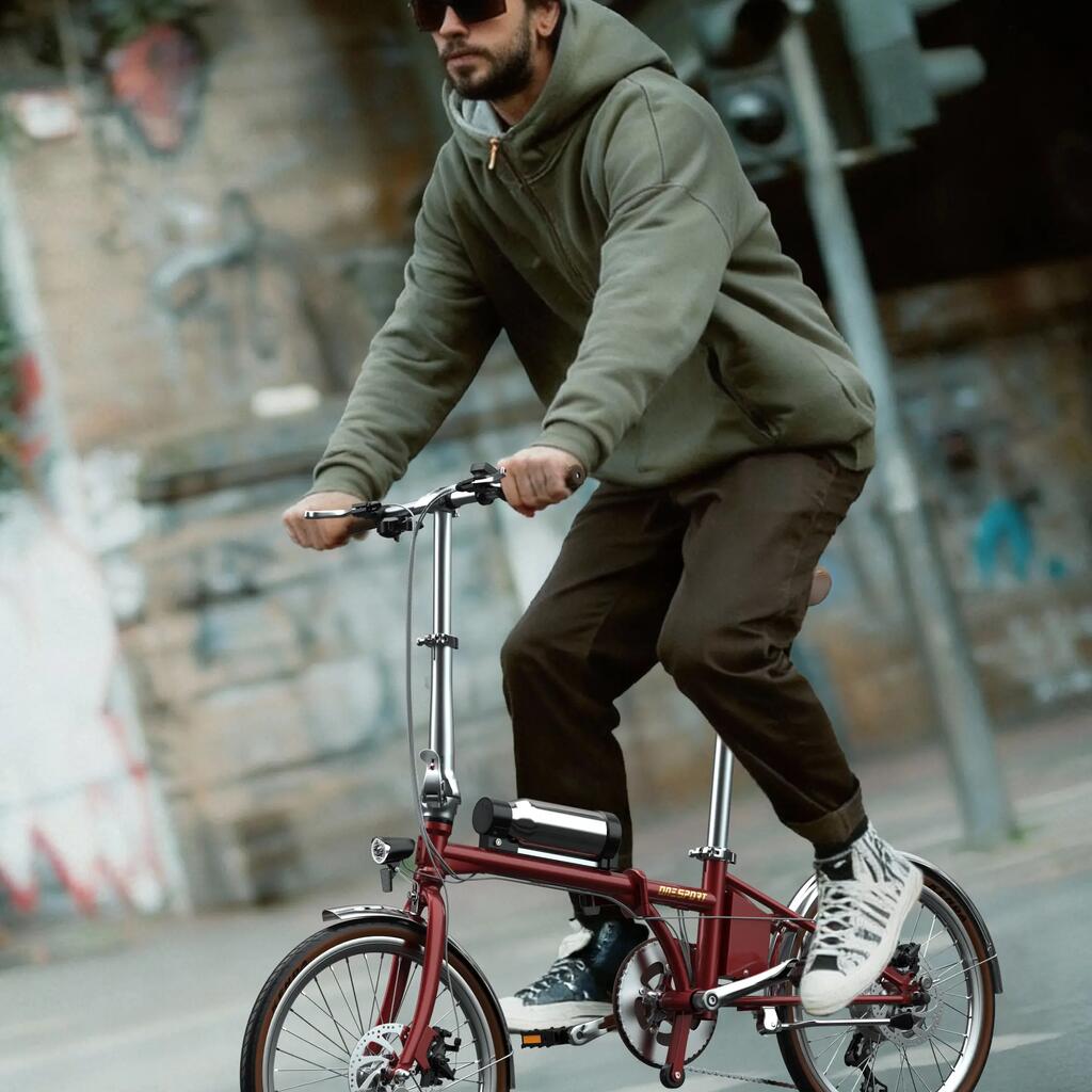 Constructed from chromoly steel, the frame provides a balance of strength, durability, and relatively low weight. With a net weight of approximately 17.18 kg, the bike remains easy to lift and maneuver when folded, while still supporting riders up to 80 kg.