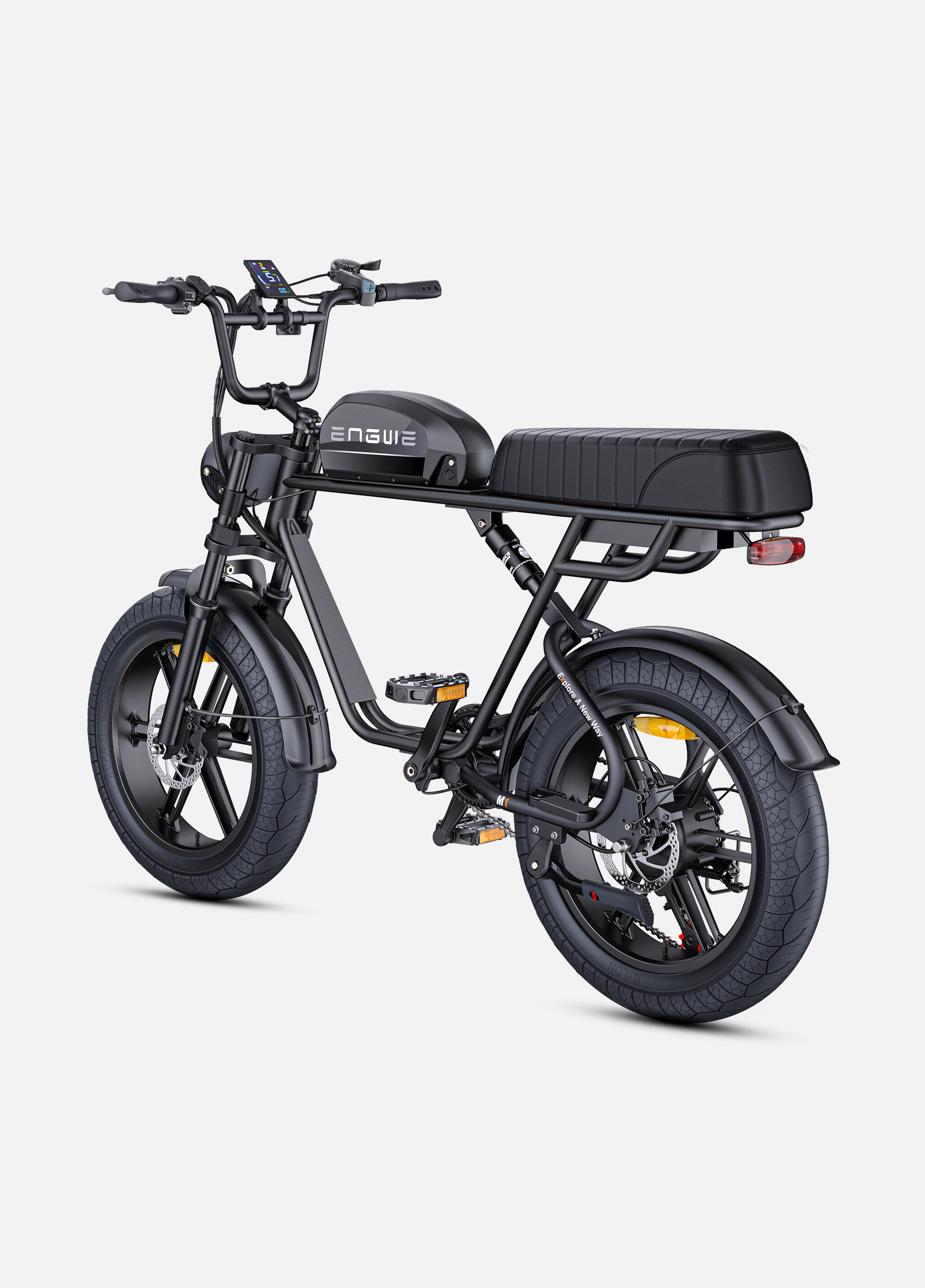 The 20x4.0-inch fat tires provide exceptional traction and stability on diverse surfaces including pavement, gravel, sand, and dirt. The wide footprint enhances safety, control, and confidence across variable conditions, making the M1 suitable for riders of all experience levels.