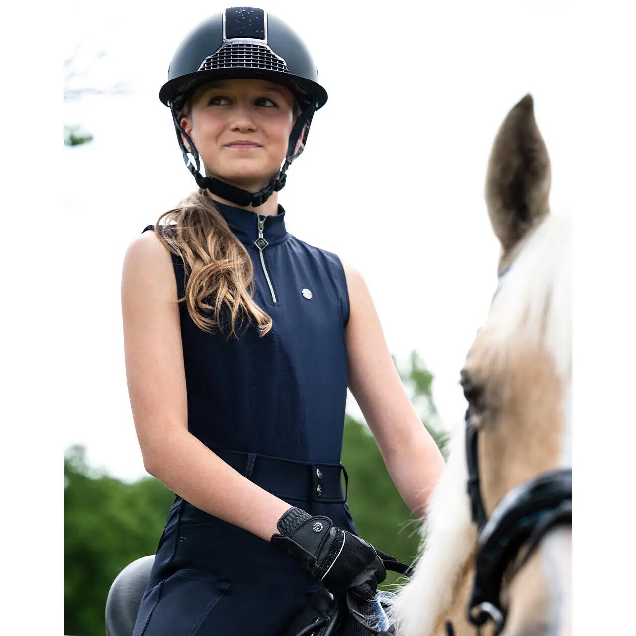 Discover the girls' riding polo QHP Aubree, combining style and comfort for young riders passionate about equestrianism.