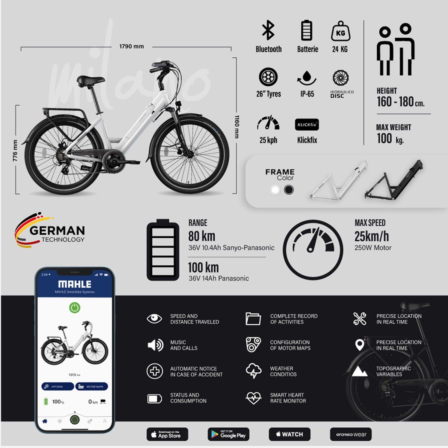 26" Electric City Bike Smartbike - Legend Milano 14Ah White