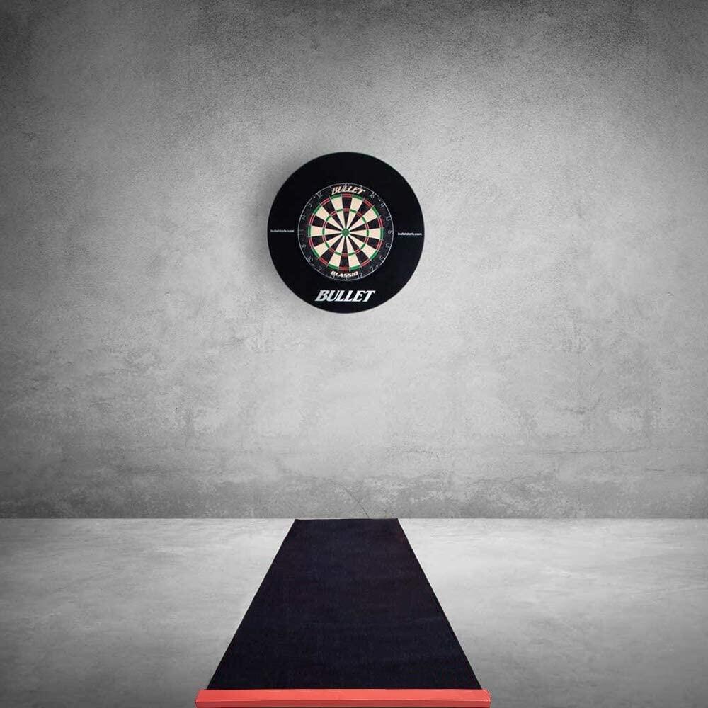 4-piece dart mat with oche - 237 cm This mat not only looks stylish, but also helps you maintain the correct distance from the board. When not in use, you can simply store the puzzle pieces away.