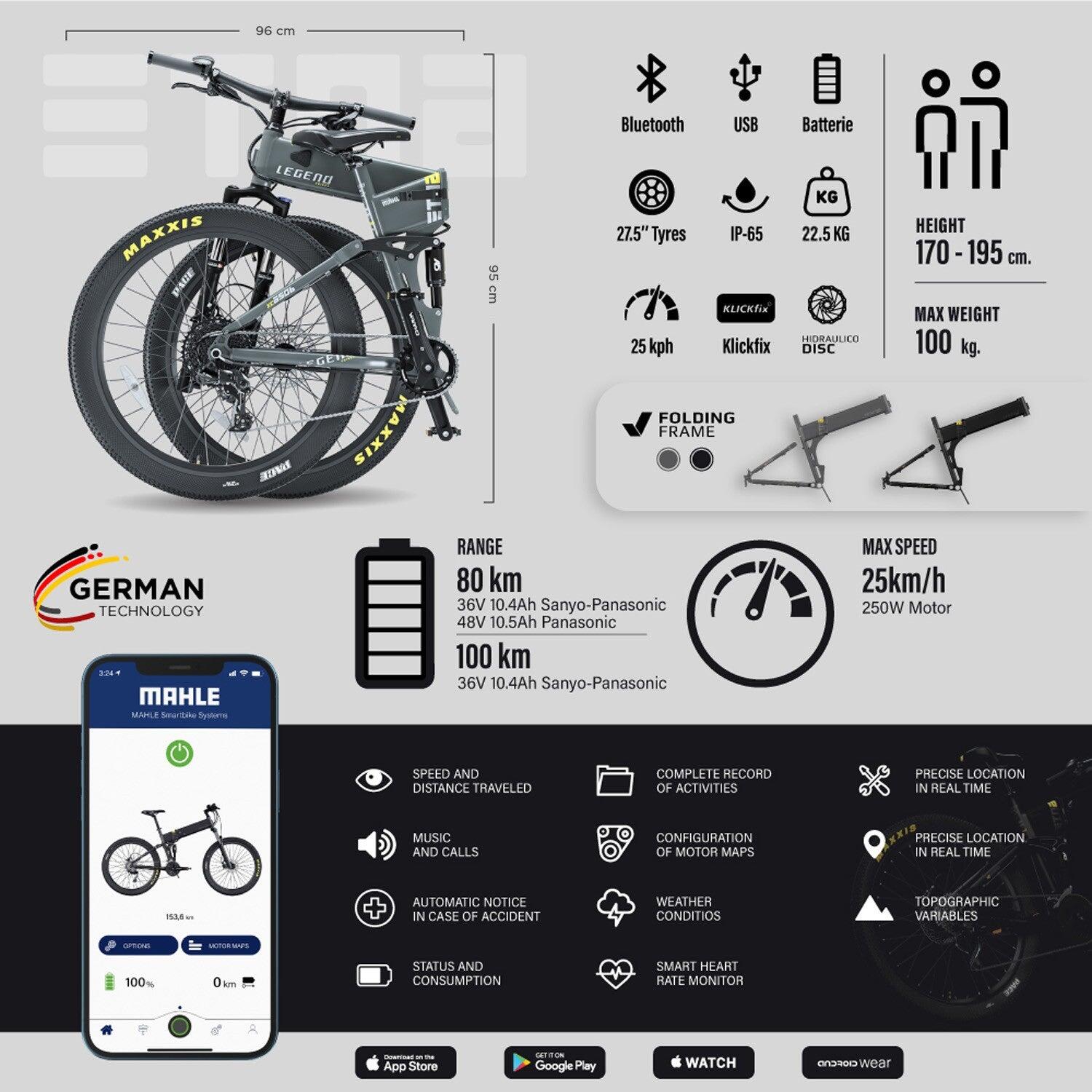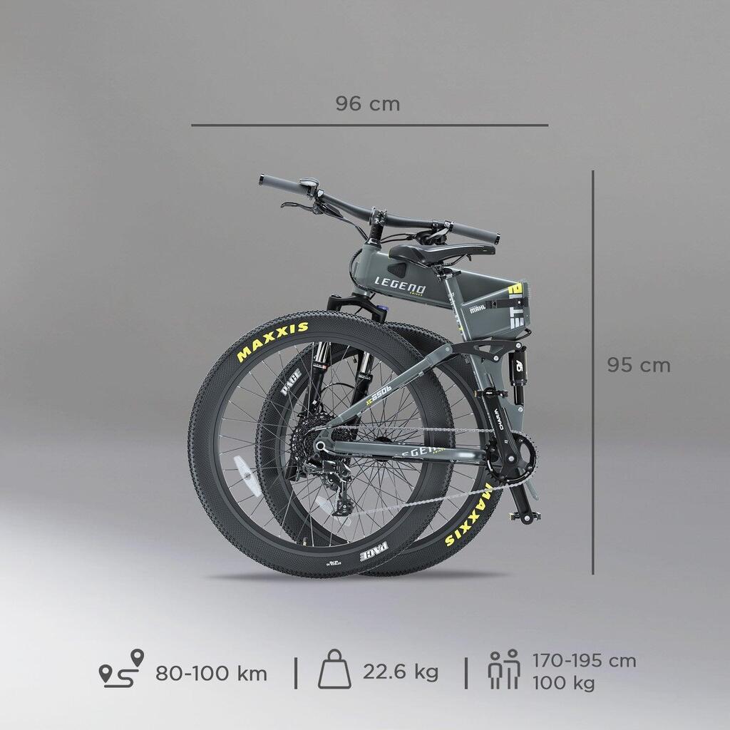 **REINFORCED ALUMINIUM FRAME** The refined design of the Legend Etna SR, worthy of high-end bikes, with a foldable frame designed to offer excellent manoeuvrability and more space for the cyclist. Quick folding in less than 5 seconds.