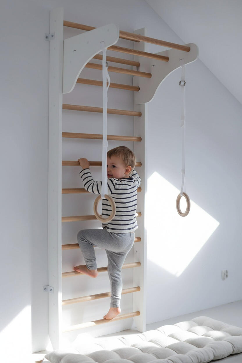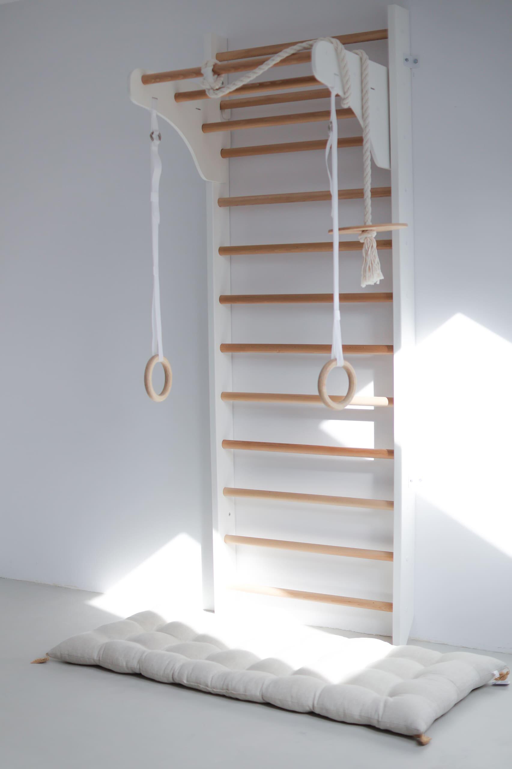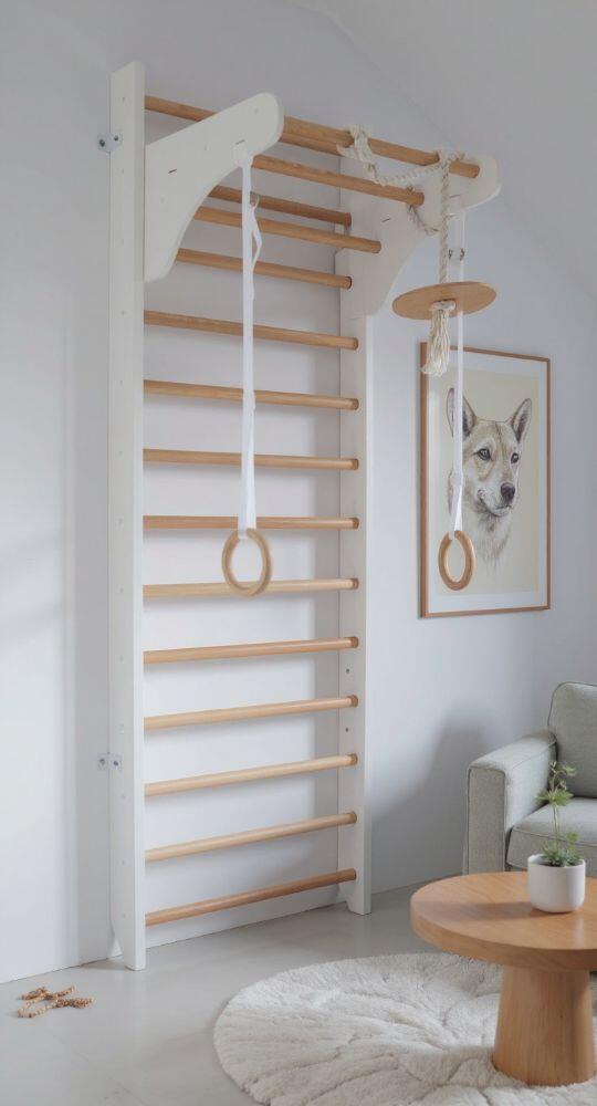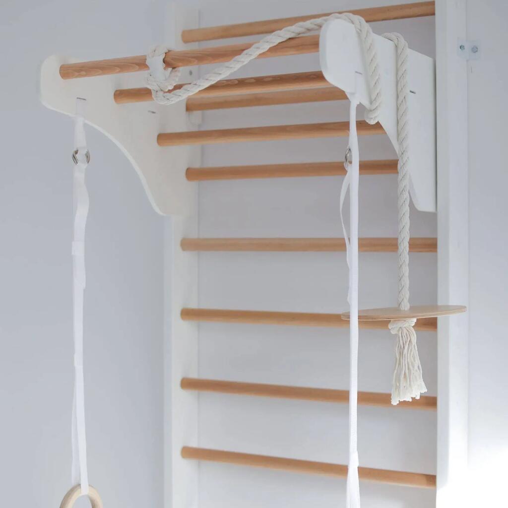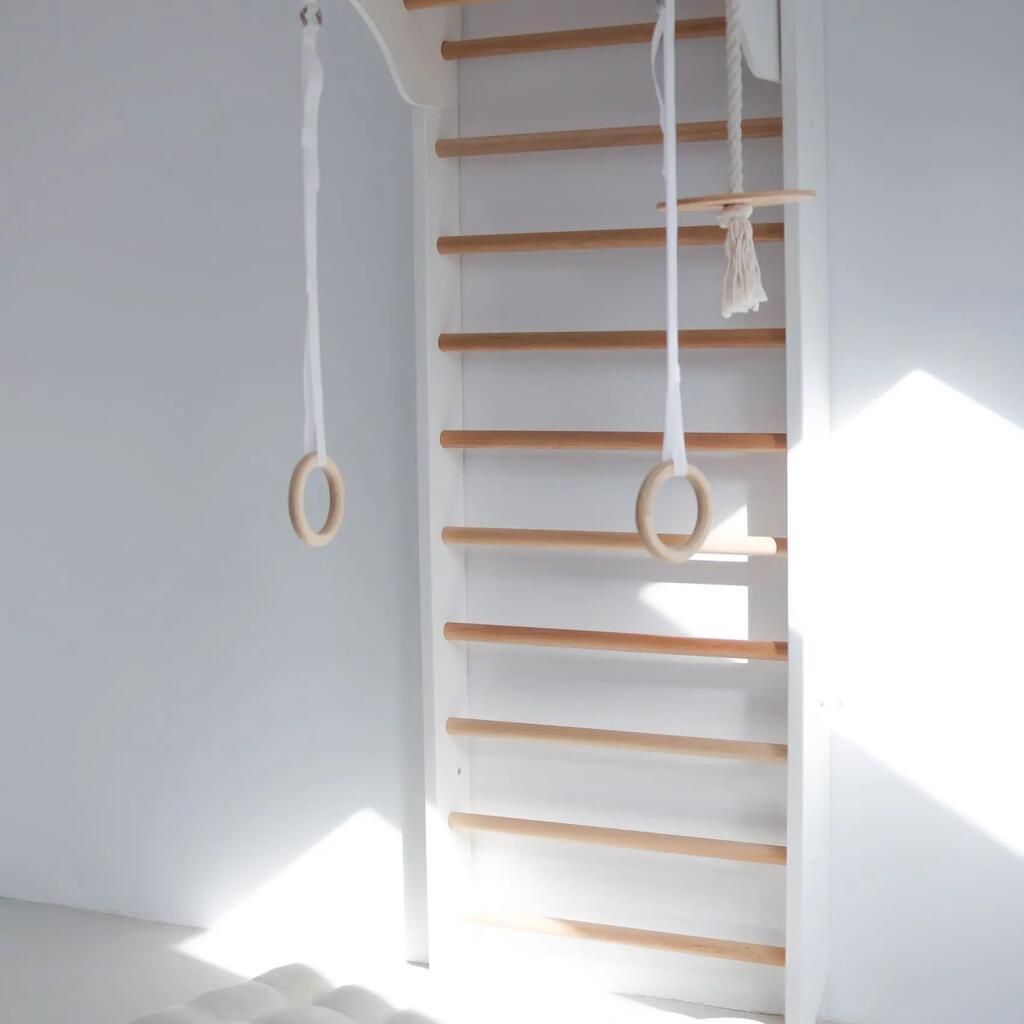 Transform your child’s room into an active adventure zone with the Kinder Wood Wall Bars — featuring a disc swing and rings for endless healthy fun!