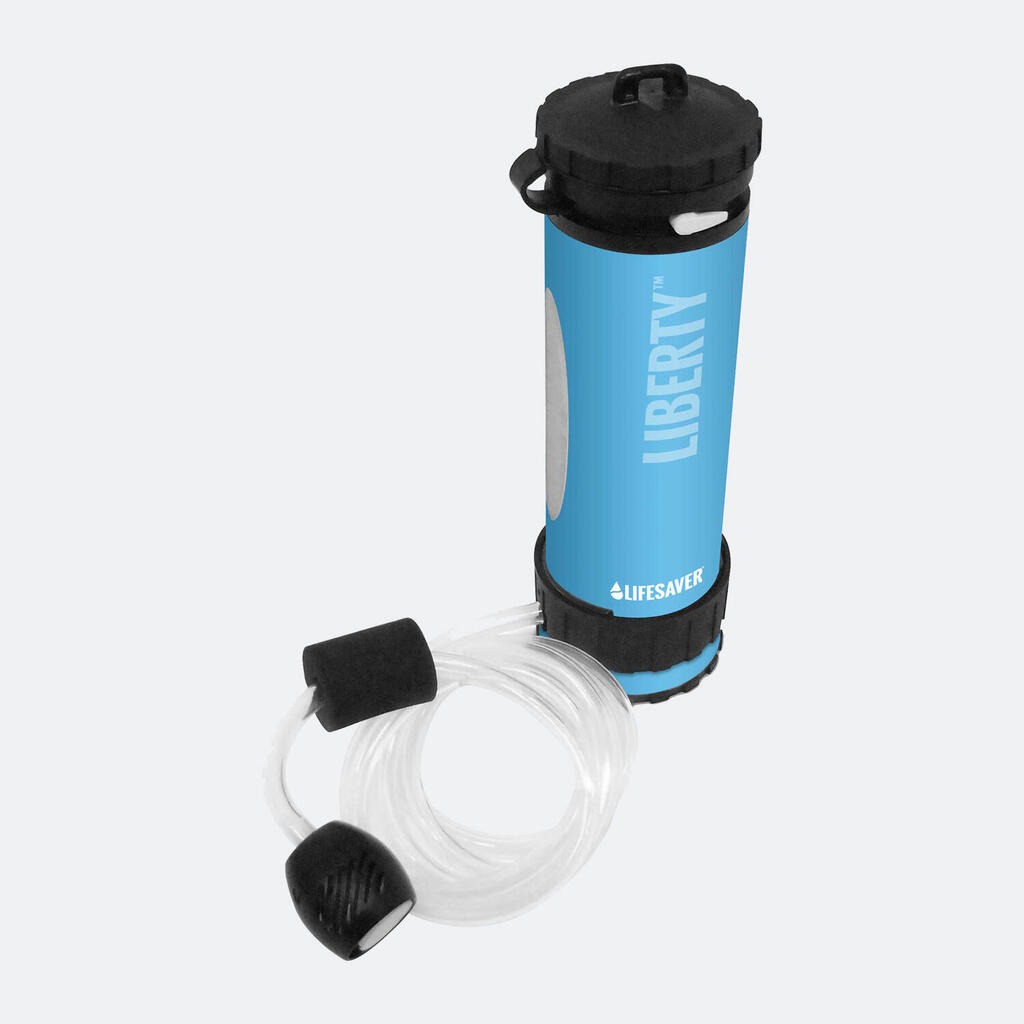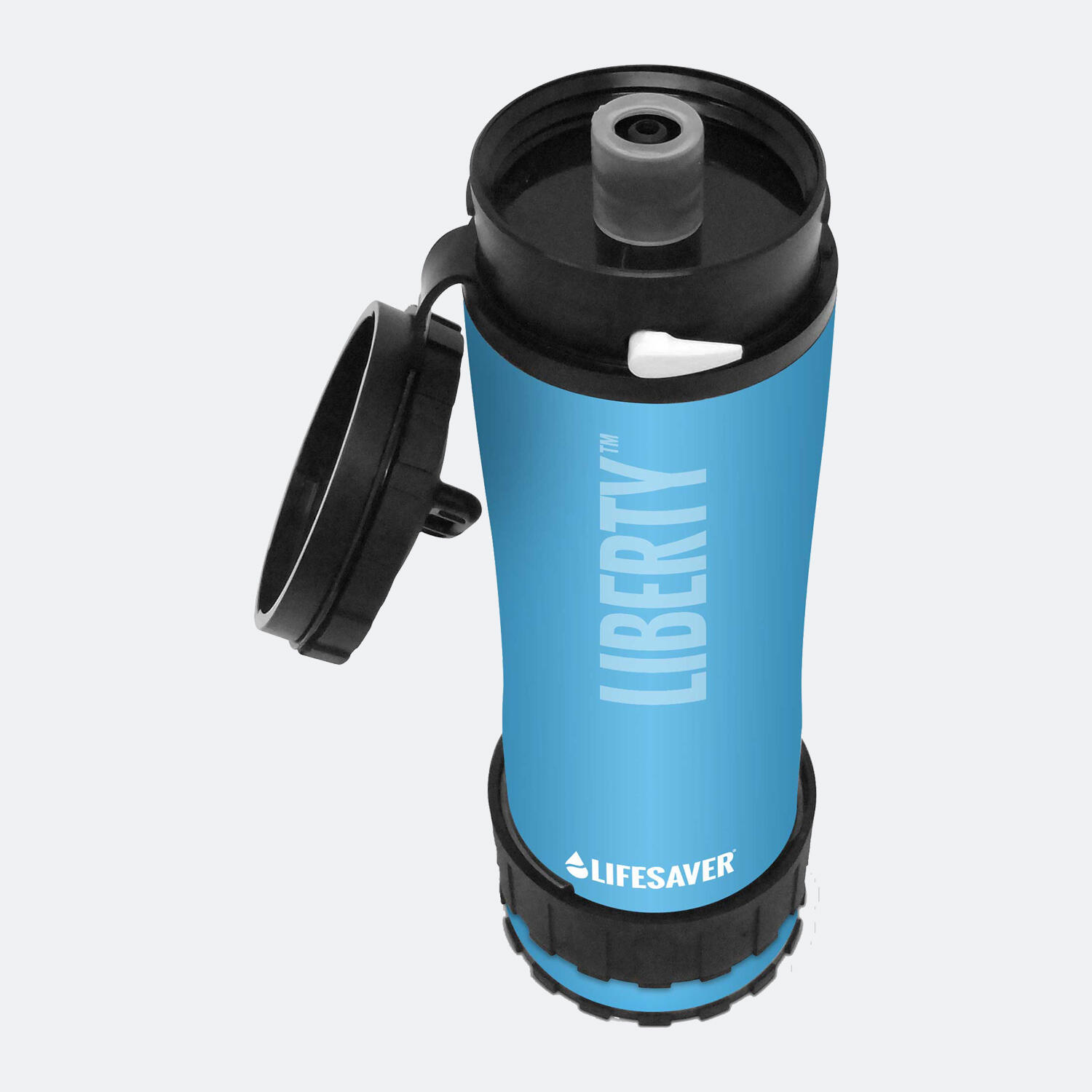 The Lifesaver Liberty water bottle from Lifesaver: purify your water on the go with its patented pump filter and its ability to eliminate bacteria, viruses and cysts.