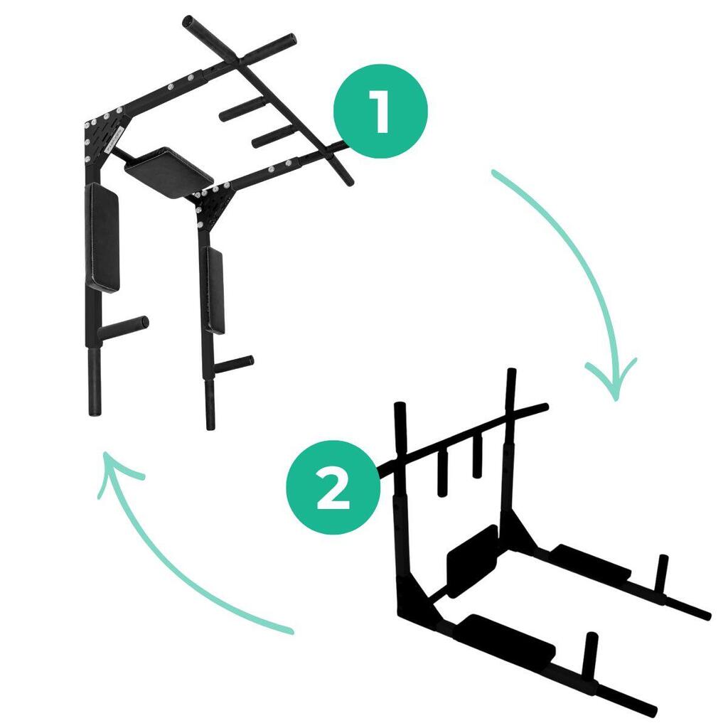 Transform your home into a gym with the Gros 3-in-1 Wall Mounted Station: the ultimate tool for pull-ups, dips, and core workouts.