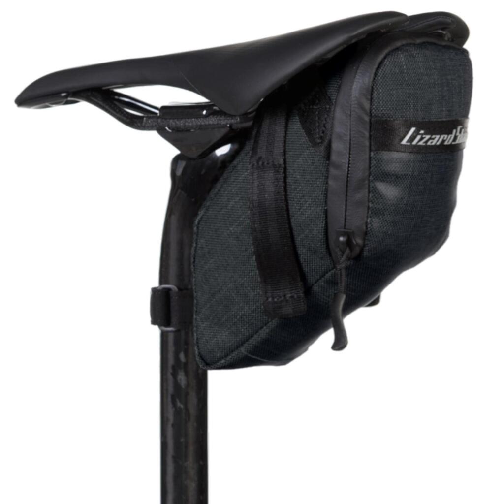The Lizard Skins Mega Cache bike saddle bag: lightweight, water-resistant and spacious, with an ergonomic design.