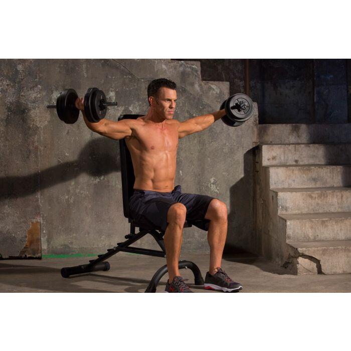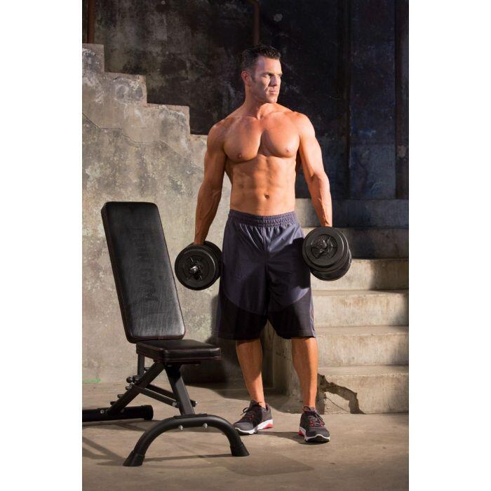 Train at home with the adjustable dumbbell set from Iron Gym and easily switch between 3 weight levels for an effective strength workout.