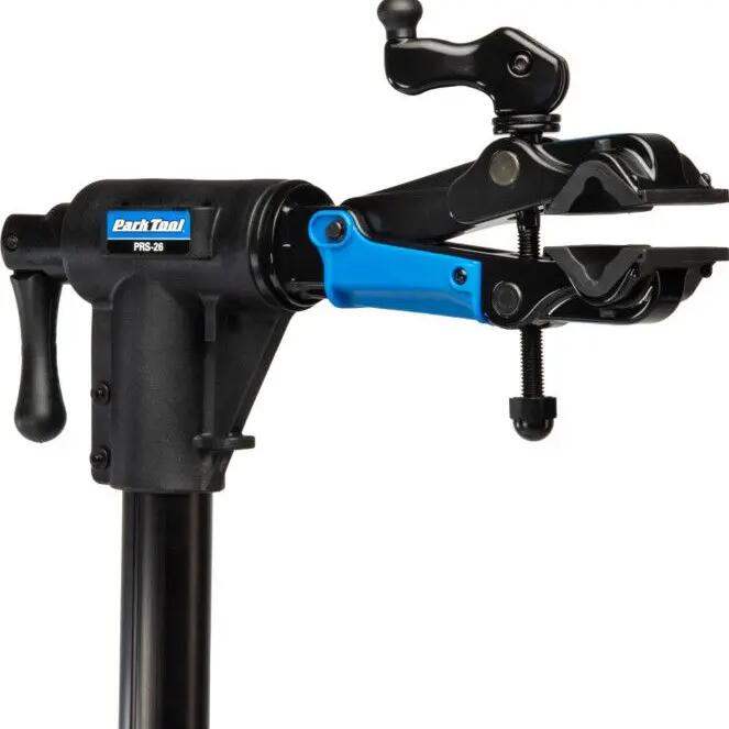 The PRS-26 takes the proven features of our other workshop stands to produce a sturdy, lightweight repair stand suitable for travel and racing stands. The sturdy tripod leg design folds and unfolds quickly and easily, and provides stability on any surface. The clamp is height adjustable from 97 to 147 cm (38" to 58"), and can be positioned on one leg or between two legs to fit any bike.Precision-constructed from lightweight 6063 T6 anodized aluminum and durable composite materials, the PRS-26 is our lightest complete repair stand and folds compactly for storage or transport.The PRS-26 features the proven 100-25D micro-adjustable clamp, which is the same design as our shop stands. The 100-25D features narrow clamping jaws to accommodate tight spaces or short seat posts, and will clamp almost any tube from 23 to 76 mm (7/8" to 3"), including aero tubes and telescoping seat posts. The cam adjustment system allows for quick entry, adjustment and exit.Details Clamp width: 70 mm (2.75"). Clamping capacity: round and aerodynamic tubes from 22 to 76 mm (7/8" to 3") wide. Maximum weight capacity: 36 kg. Height adjustable from 97 to 147 cm (38" to 58"). Base when open forms a triangle of 126 x 126 x 126 cm (49.6" x 49.6"). Folds to 45" x 14.5" (1140 mm x 370 mm). Weight: 5.7 kg.