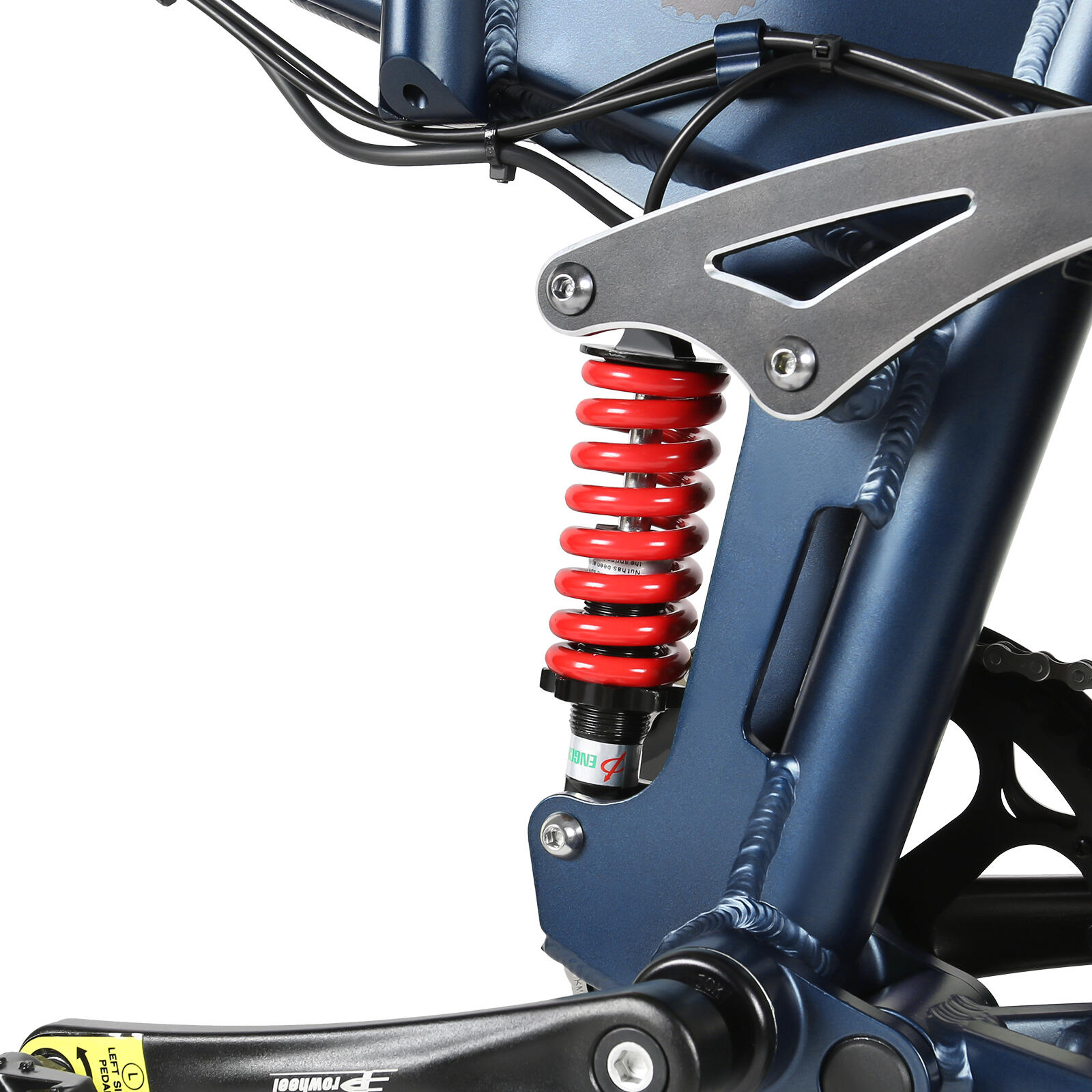 The combination of adjustable front suspension, rear spring shock absorber, effectively reduces bumps and vibrations across uneven surfaces, maintaining comfort and control even on demanding trails.