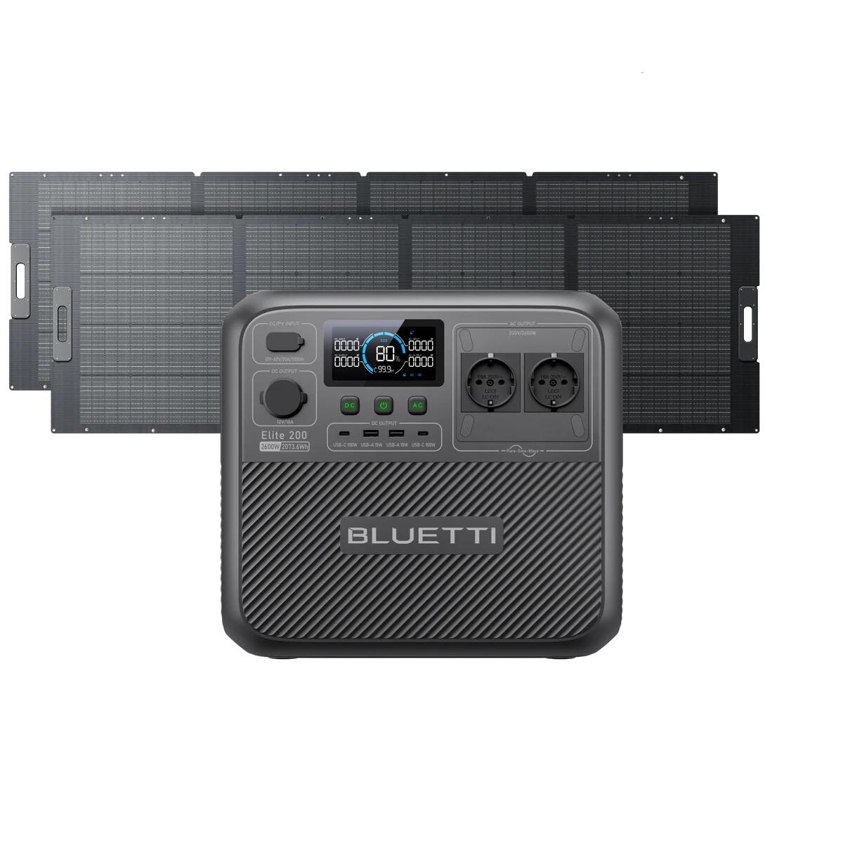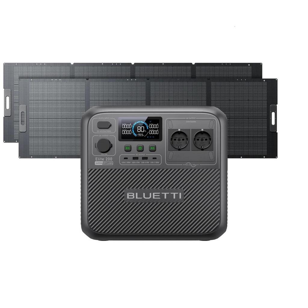 【Package Contents】 - BLUETTI Elite 200 V2 Portable Power Station, ,350W Solar panels *2(Shipped separately),AC charging cable,grounding screw, user manual. (Solar charging cable not included)