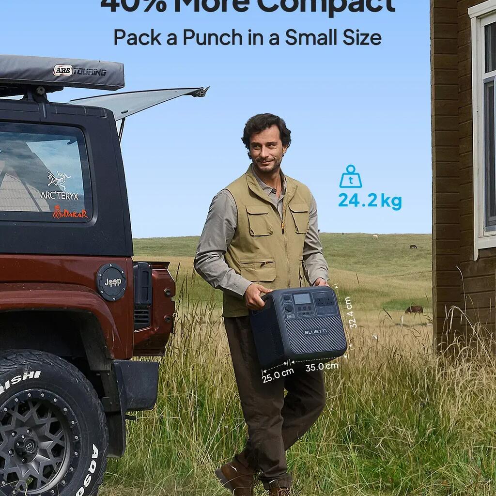 [Power Up Your Trip] - With a 2073.6 Wh capacity and 2600 W AC output (5200 W peak), the Elite 200 V2 can power up to 7 devices simultaneously. Ultra-compact, it's ideal for camping, road trips, and as a backup power source at home.