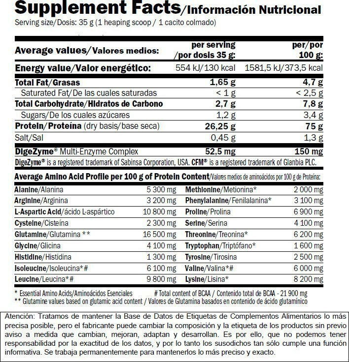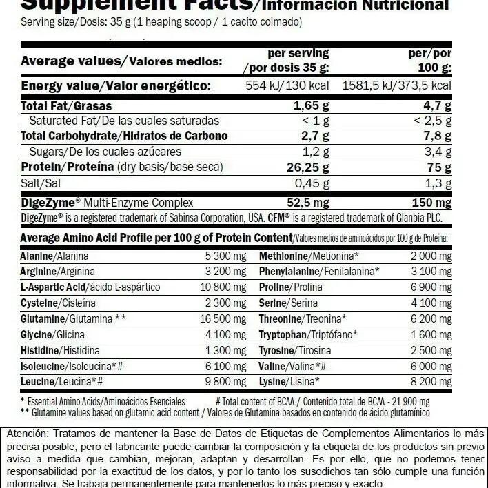 26.25g of protein per 35g serving