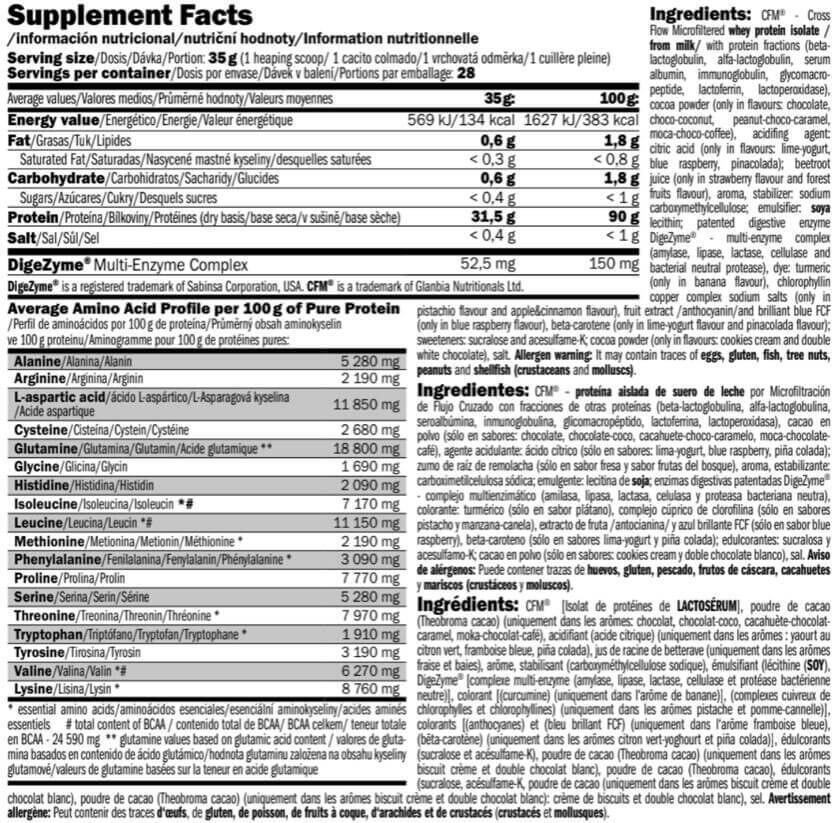 Isoprime CFM from Amix Nutrition is a high-purity (90%) whey protein isolate, with rapid absorption and enriched with DigeZyme® digestive enzymes.