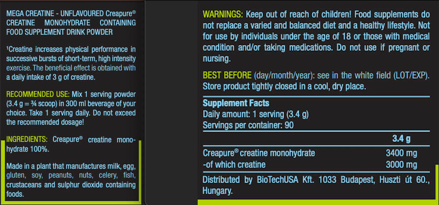 Mega Creatine (Creapure®) from Biotech USA offers high-quality creatine monohydrate, perfect for your athletic goals.